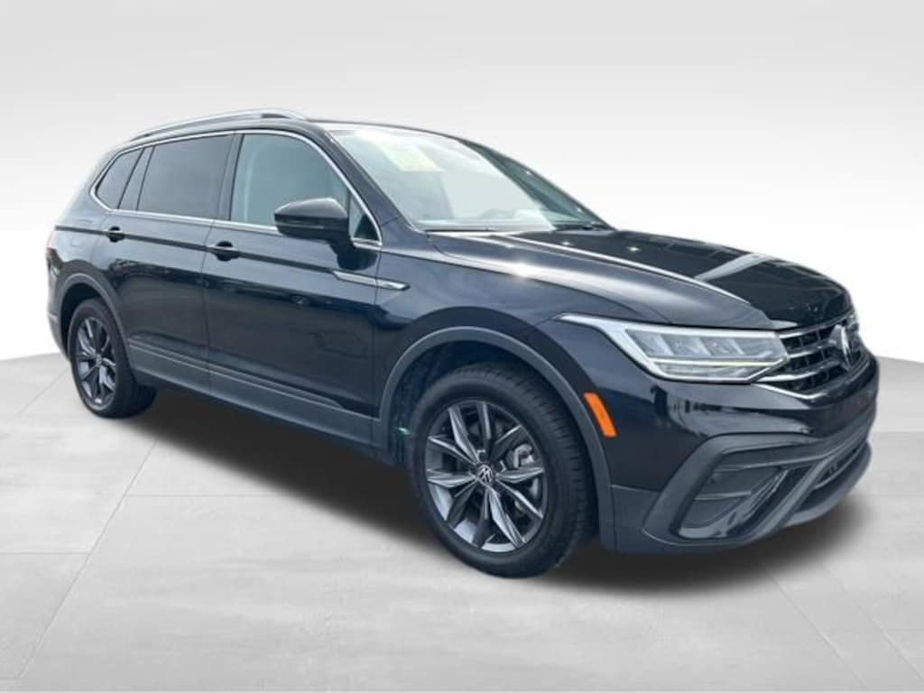 2022 Volkswagen Tiguan 2.0T SE Certified. Deep Black 2.0T SE FWD 8-Speed Automatic with Tiptronic 2.0L TSI DOHC Volkswagen Certified, 3-Row Rubber Monster Mats w/Logo Kit (Set of 5), 3.33 Axle Ratio, 3rd row seats: bench, 4-Wheel Disc Brakes, 4-Wheel Independent Suspension, 6 Speakers, ABS brakes, Air Conditioning, Alloy wheels, AM/FM radio: SiriusXM with 360L, Auto-dimming Rear-View mirror, Auto-Dimming Rearview Mirror w/HomeLink Connect (DISC), Automatic temperature control, Brake assist, Bumpers: body-color, Cargo Area Retractable Privacy Cover, Compass, Delay-off headlights, Driver door bin, Driver vanity mirror, Dual front impact airbags, Dual front side impact airbags, Electronic Stability Control, Emergency communication system: Car-Net, Exterior Parking Camera Rear, First Aid Kit, Four wheel independent suspension, Front anti-roll bar, Front Bucket Seats, Front Center Armrest, Front dual zone A/C, Front reading lights, Fully automatic headlights, Heated door mirrors, Heated Front Comfort Seats, Heated front seats, Heavy Duty Trunk Liner w/VW CarGo Blocks, Illuminated entry, Leather Shift Knob, Low tire pressure warning, Occupant sensing airbag, Outside temperature display, Overhead airbag, Overhead console, Panic alarm, Panoramic Sunroof Package, Passenger door bin, Passenger vanity mirror, Perforated V-Tex Leatherette Seating Surfaces, Power door mirrors, Power driver seat, Power Liftgate, Power steering, Power windows, Radio data system, Radio: MIB3 Composition Media AM/FM/HD, Rain sensing wipers, Rear anti-roll bar, Rear reading lights, Rear seat center armrest, Rear window defroster, Rear window wiper, Remote keyless entry, Roadside Assistance Kit, Roof rack: rails only, Security system, Speed control, Speed-sensing steering, Split folding rear seat, Spoiler, Steering wheel mounted audio controls, Tachometer, Telescoping steering wheel, Tilt steering wheel, Traction control, Trip computer, Turn signal indicator mirrors, Variably intermittent wipers, Wheels: 18" Dark Graphite 10-Spoke Alloy.