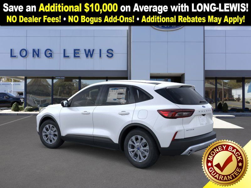 space silver metallic 2026 Ford Escape Active FLT FWD 8-Speed Automatic 1.5L EcoBoost 3.81 Axle Ratio, 4-Wheel Disc Brakes, 6 Speakers, ABS brakes, Air Conditioning, Alloy wheels, Auto High-beam Headlights, Automatic temperature control, Brake assist, Bumpers: body-color, Compass, Delay-off headlights, Driver door bin, Driver vanity mirror, Dual front impact airbags, Dual front side impact airbags, Electronic Stability Control, Emergency communication system: SYNC 4 911 Assist, Ford App, Four wheel independent suspension, Front anti-roll bar, Front Bucket Seats, Front Center Armrest, Front dual zone A/C, Front reading lights, Fully automatic headlights, Illuminated entry, Knee airbag, Low tire pressure warning, Occupant sensing airbag, Outside temperature display, Overhead airbag, Overhead console, Panic alarm, Passenger door bin, Passenger vanity mirror, Power door mirrors, Power steering, Power windows, Radio data system, Rear anti-roll bar, Rear reading lights, Rear seat center armrest, Rear window defroster, Rear window wiper, Remote keyless entry, Speed control, Speed-sensing steering, Speed-Sensitive Wipers, Split folding rear seat, Spoiler, Steering wheel mounted audio controls, SYNC 4, Tachometer, Telescoping steering wheel, Tilt steering wheel, Traction control, Trip computer, Unique Cloth Front Bucket Seats, Variably intermittent wipers, Wheels: 17" Shadow Silver-Painted Aluminum.