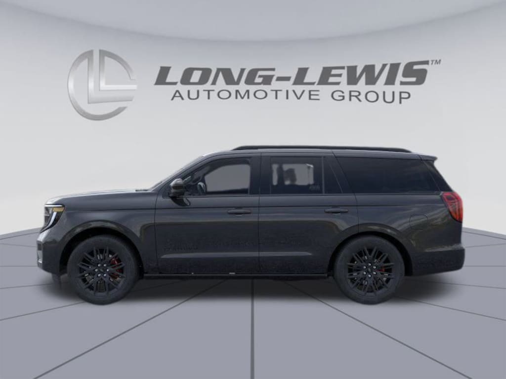 Dark Matter Gray Metallic 2025 Ford Expedition Platinum 4WD 10-Speed Automatic 3.5L V6 4WD, 10 Speakers, 2nd Row Power-Folding Captain's Chairs, 3.73 Axle Ratio, 3rd row seats: split-bench, 4-Wheel Disc Brakes, ABS brakes, Adjustable pedals, Air Conditioning, Alloy wheels, AM/FM radio: SiriusXM with 360L, Apple CarPlay/Android Auto, Auto High-beam Headlights, Auto-dimming door mirrors, Auto-dimming Rear-View mirror, Automatic temperature control, Black Belt Molding, Black Expedition Lettering On Hood, Black Headlamp Bezel w/Ebony Trim Applique, Black Platinum Badge On Tailgate, Black Roof Rails, Brake assist, Bumpers: body-color, Carbon Black Front Bumper/Fascia, Compass, Continuous Control Damping Suspension, Delay-off headlights, Driver door bin, Driver vanity mirror, Driver's Package, Dual front impact airbags, Dual front side impact airbags, Electronic Stability Control, Emergency communication system: 911 Assist, Engine Sound Enhancer, Exterior Parking Camera Rear, Four wheel independent suspension, Front anti-roll bar, Front Bucket Seats, Front Center Armrest, Front dual zone A/C, Front License Plate Bracket, Front reading lights, Fully automatic headlights, Garage door transmitter, Genuine wood dashboard insert, Genuine wood door panel insert, Heated & Ventilated Leather Front Captain's Chairs, Heated door mirrors, Heated front seats, Heated rear seats, Heated steering wheel, High Flow Exhaust System, Illuminated entry, Leather steering wheel, Low tire pressure warning, Memory seat, Multicontour Active Motion Lthr Frnt Captains Chairs, Navigation System, Occupant sensing airbag, Outside temperature display, Overhead airbag, Overhead console, Panic alarm, Passenger door bin, Passenger vanity mirror, Pedal memory, Power door mirrors, Power driver seat, Power moonroof: Vista Roof, Power passenger seat, Power steering, Power windows, Radio data system, Radio: B&O Sound System by Bang & Olufsen, Radio: B&O Unleashed Sound System by Bang & Olufsen, Rain sensing wipers, Rear air conditioning, Rear anti-roll bar, Rear reading lights, Rear Side Windows Laminated Glass, Rear window defroster, Rear window wiper, Reclining 3rd row seat, Red Brake Calipers, Remote keyless entry, Security system, Signature Grille Lighting, SiriusXM w/360L, Speed control, Speed-sensing steering, Speed-Sensitive Wipers, Split folding rear seat, Spoiler, Stealth Appearance Package, Stealth Performance Package, Steering wheel memory, Steering wheel mounted audio controls, Tachometer, Telescoping steering wheel, Tilt steering wheel, Traction control, Trip computer, Turn signal indicator mirrors, Variably intermittent wipers, Ventilated front seats, Voltmeter, Wheels: 20" Ebony Bright Machined Aluminum, Wheels: 22" Magnetite Painted Aluminum, 4WD.