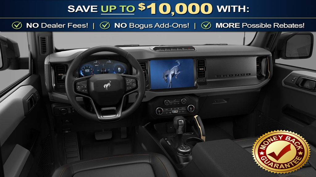 Shadow Black 2026 Ford Bronco Badlands NFT 4WD 10-Speed Automatic 2.7L EcoBoost V6 4-Wheel Disc Brakes, 7 Speakers, ABS brakes, Air Conditioning, Alloy wheels, AM/FM radio: SiriusXM with 360L, AM/FM Stereo, Auto High-beam Headlights, Auto-dimming Rear-View mirror, Brake assist, Carbonized Gray Molded-in-Color Hard Top, Compass, Delay-off headlights, Driver door bin, Driver vanity mirror, Dual front impact airbags, Dual front side impact airbags, Electronic Stability Control, Emergency communication system: 911 Assist, Exterior Parking Camera Rear, Ford Connectivity Package (1-Year Included), Front anti-roll bar, Front Bucket Seats, Front Center Armrest, Front fog lights, Front License Plate Bracket, Front reading lights, Front Stabilizer Disconnect, Front wheel independent suspension, Fully automatic headlights, Hard Top Sound Deadening Headliner, Heated door mirrors, Heated front seats, High Clearance Suspension, Illuminated entry, Integrated roll-over protection, Leather Shift Knob, Low tire pressure warning, Marine Grade Vinyl Heated Bucket Seats, Occupant sensing airbag, Outside temperature display, Overhead airbag, Overhead console, Panic alarm, Passenger door bin, Passenger vanity mirror, Position-Sensitive Bilstein Shock Absorbers, Power door mirrors, Power steering, Power windows, Radio data system, Rear-Window Defroster and Washer, Remote keyless entry, Sasquatch Package, Security system, SiriusXM with 360L, Speed control, Split folding rear seat, Steering wheel mounted audio controls, SYNC 4, Tachometer, Telescoping steering wheel, Tilt steering wheel, Traction control, Trip computer, Variably intermittent wipers, Voltmeter, Wheels: 17" Carbonized Gray-Painted Aluminum.