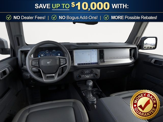2026 Ford Bronco Outer Banks NFT Avalanche Gray Outer Banks NFT 4WD 10-Speed Automatic 2.3L EcoBoost I-4 18" Bright Machined Aluminum Wheels, 3.73 Axle Ratio, 4-Wheel Disc Brakes, 7 Speakers, ABS brakes, Air Conditioning, Alloy wheels, AM/FM radio: SiriusXM with 360L, AM/FM Stereo, Auto High-beam Headlights, Auto-dimming Rear-View mirror, Automatic temperature control, Brake assist, Compass, Connected Navigation, Delay-off headlights, Driver door bin, Driver vanity mirror, Dual front impact airbags, Dual front side impact airbags, Electronic Stability Control, Emergency communication system: 911 Assist, Exterior Parking Camera Rear, Ford Connectivity Package (1-Year Included), Front anti-roll bar, Front Bucket Seats, Front Center Armrest, Front dual zone A/C, Front fog lights, Front reading lights, Front wheel independent suspension, Fully automatic headlights, Hard Top Sound Deadening Headliner, Heated door mirrors, Heated front seats, Heated Leather-Trimmed/Vinyl Bucket Seats, Heated steering wheel, Illuminated entry, Integrated roll-over protection, Leather Shift Knob, Low tire pressure warning, Navigation system: Connected Navigation, Occupant sensing airbag, Outside temperature display, Overhead airbag, Overhead console, Painted Hard Top, Panic alarm, Passenger door bin, Passenger vanity mirror, Power door mirrors, Power driver seat, Power passenger seat, Power steering, Power windows, Radio data system, Rear seat center armrest, Rear-Window Defroster and Washer, Remote keyless entry, Security system, SiriusXM with 360L, Speed control, Split folding rear seat, Steering wheel mounted audio controls, SYNC 4, Tachometer, Telescoping steering wheel, Tilt steering wheel, Traction control, Trip computer, Variably intermittent wipers, Voltmeter.