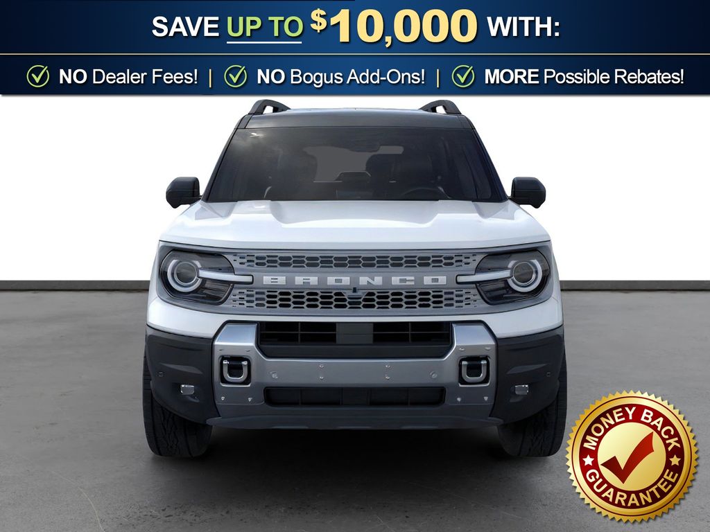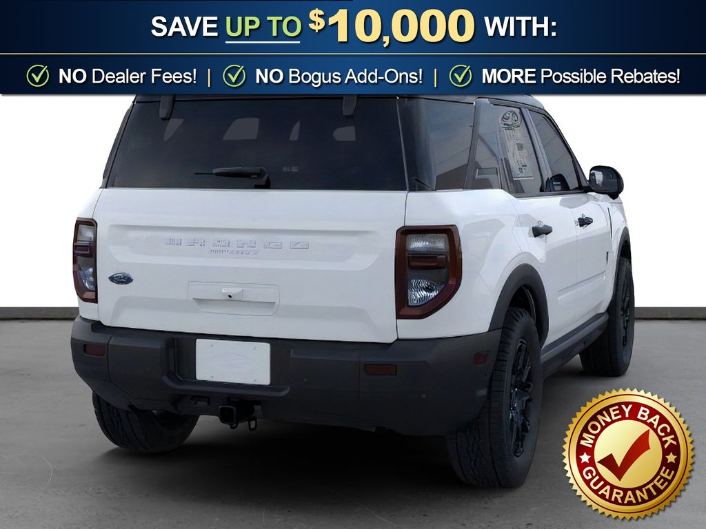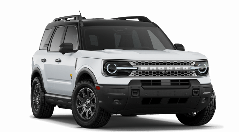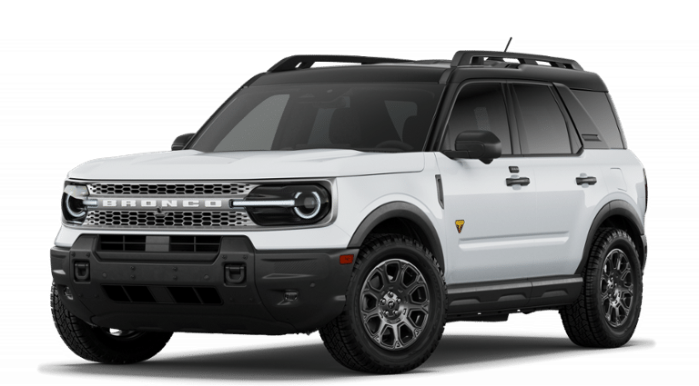 Oxford White 2026 Ford Bronco Sport Badlands NFT 4WD 8-Speed Automatic EcoBoost 2.0L I4 GTDi DOHC Turbocharged VCT 4-Wheel Disc Brakes, 6 Speakers, ABS brakes, Air Conditioning, Alloy wheels, AM/FM radio: SiriusXM with 360L, AM/FM Stereo, Apple CarPlay/Android Auto, Auto High-beam Headlights, Auto-dimming Rear-View mirror, Automatic temperature control, Badlands Tech Package, Brake assist, Compass, Connected Navigation (1-Year Included), Delay-off headlights, Driver door bin, Driver vanity mirror, Dual front impact airbags, Dual front side impact airbags, Electronic Stability Control, Emergency communication system: SYNC 4 911 Assist, Exterior Parking Camera Rear, Ford Connectivity Package (1-Year Included), Four wheel independent suspension, Front anti-roll bar, Front Bucket Seats, Front Center Armrest, Front fog lights, Front License Plate Bracket, Front reading lights, Fully automatic headlights, Heated door mirrors, Heated front seats, Heated steering wheel, Illuminated entry, Internet access capable: 5G Modem - Ford Connectivity Package, Knee airbag, Leather-Trimmed Heated Front Sport Contour Bucket Seats, Low tire pressure warning, Memory seat, Noise Reduction Module, Occupant sensing airbag, Outside temperature display, Overhead airbag, Overhead console, Panic alarm, Passenger door bin, Passenger vanity mirror, Power door mirrors, Power driver seat, Power passenger seat, Power steering, Power windows, Radio data system, Radio: HD w/B&O Sound System by Bang & Olufsen, Rear anti-roll bar, Rear reading lights, Rear seat center armrest, Rear window defroster, Rear window wiper, Remote keyless entry, Security system, SiriusXM with 360L, Speed control, Speed-sensing steering, Speed-Sensitive Wipers, Split folding rear seat, Steering wheel mounted audio controls, SYNC 4 with Enhanced Voice Recognition, Tachometer, Telescoping steering wheel, Tilt steering wheel, Traction control, Trip computer, Variably intermittent wipers, Wheels: 17" Matte Black-Painted Aluminum.