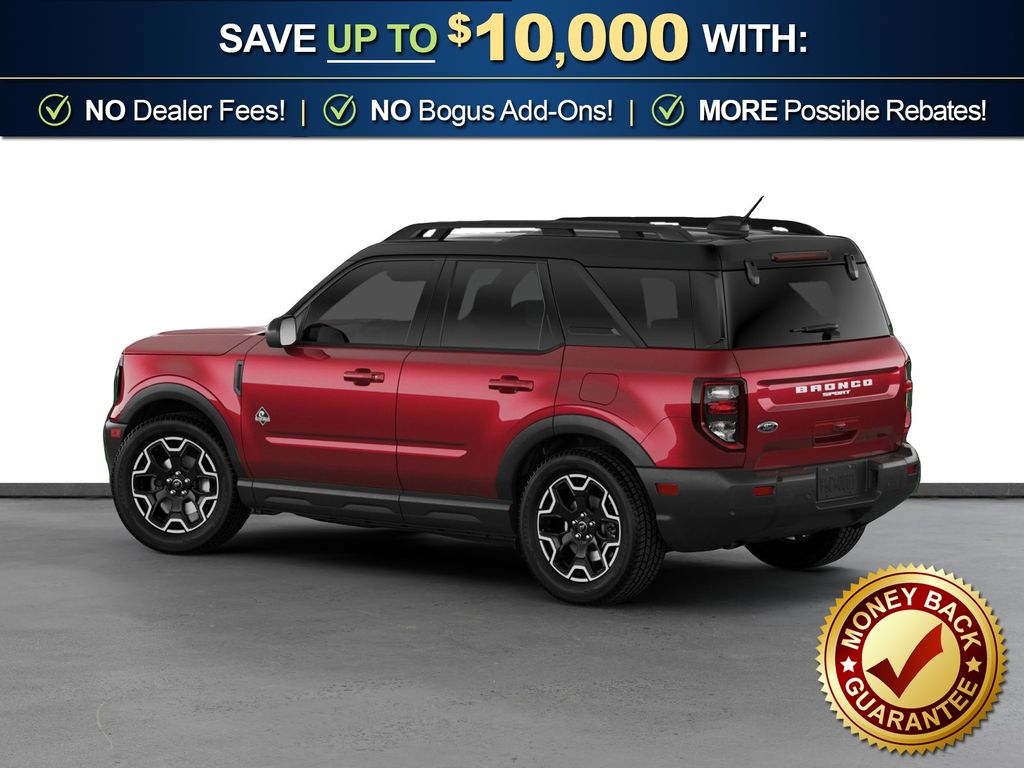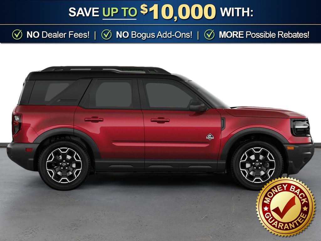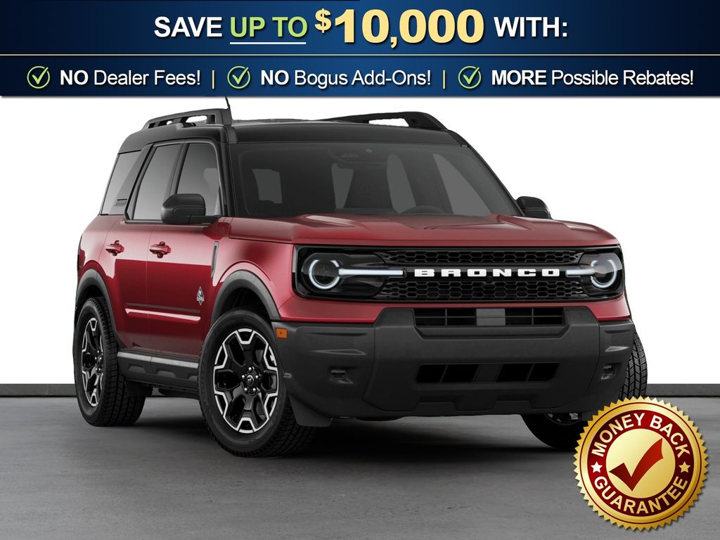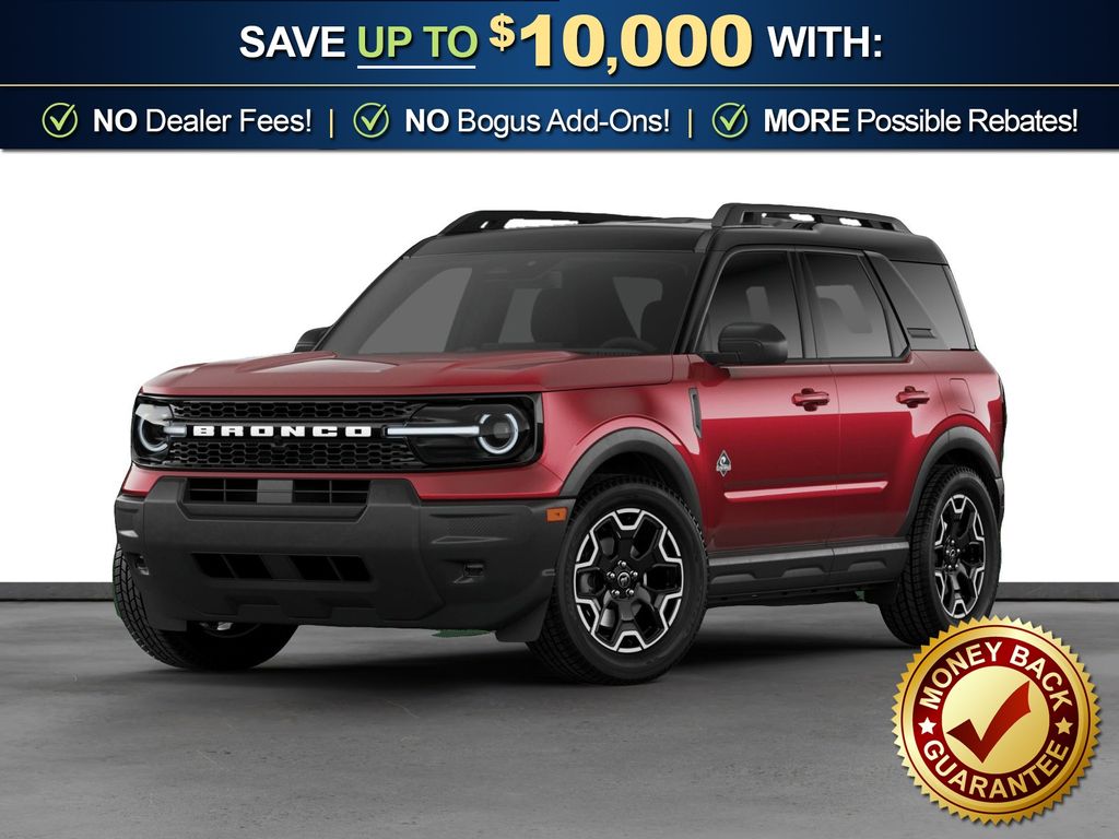 Ruby Red Metallic Tinted Clearcoat 2026 Ford Bronco Sport Outer Banks NFT 4WD 8-Speed Automatic 1.5L EcoBoost 4-Wheel Disc Brakes, 6 Speakers, ABS brakes, Air Conditioning, Alloy wheels, AM/FM radio: SiriusXM with 360L, AM/FM Stereo, Apple CarPlay/Android Auto, Auto High-beam Headlights, Auto-dimming Rear-View mirror, Automatic temperature control, Brake assist, Compass, Delay-off headlights, Driver door bin, Driver vanity mirror, Dual front impact airbags, Dual front side impact airbags, Electronic Stability Control, Emergency communication system: SYNC 4 911 Assist, Exterior Parking Camera Rear, Ford Connectivity Package (1-Year Included), Four wheel independent suspension, Front anti-roll bar, Front Bucket Seats, Front Center Armrest, Front Driver/Passenger Seat Back Map Pockets, Front dual zone A/C, Front fog lights, Front License Plate Bracket, Front reading lights, Fully automatic headlights, Heated door mirrors, Heated front seats, Heated steering wheel, Illuminated entry, Internet access capable: 5G Modem - Ford Connectivity Package, Knee airbag, Low tire pressure warning, Memory seat, Occupant sensing airbag, Outside temperature display, Overhead airbag, Overhead console, Panic alarm, Passenger door bin, Passenger vanity mirror, Power door mirrors, Power driver seat, Power passenger seat, Power steering, Power windows, Radio data system, Rear anti-roll bar, Rear Parking Sensors, Rear reading lights, Rear seat center armrest, Rear window defroster, Rear window wiper, Remote keyless entry, Security system, SiriusXM with 360L, Speed control, Speed-sensing steering, Speed-Sensitive Wipers, Split folding rear seat, Steering wheel mounted audio controls, SYNC 4 with Enhanced Voice Recognition, Tachometer, Telescoping steering wheel, Tilt steering wheel, Traction control, Trip computer, Variably intermittent wipers, Wheels: 18" Ebony Black.