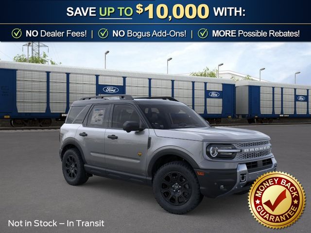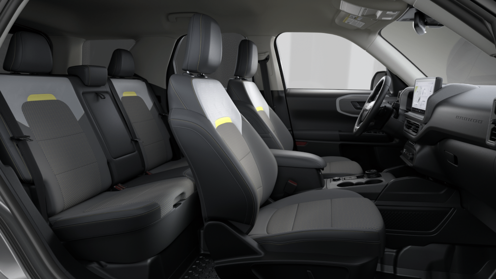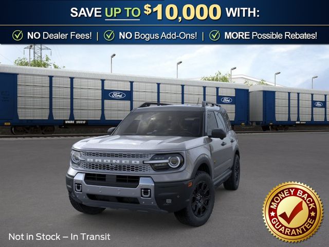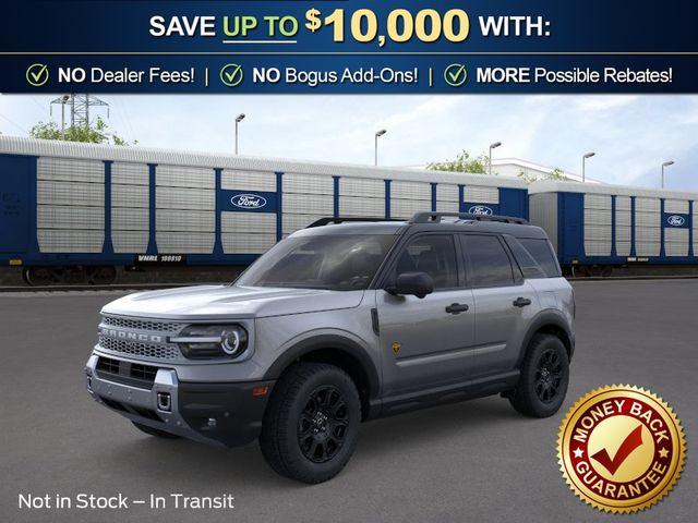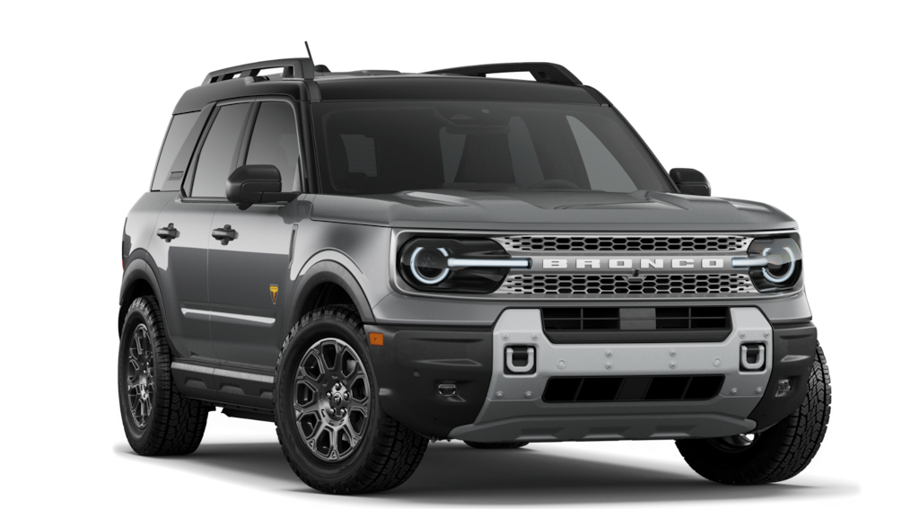 2026 Ford Bronco Sport Badlands NFT Carbonized Gray Metallic Badlands NFT 4WD 8-Speed Automatic EcoBoost 2.0L I4 GTDi DOHC Turbocharged VCT 4-Wheel Disc Brakes, 6 Speakers, ABS brakes, Air Conditioning, Alloy wheels, AM/FM radio: SiriusXM with 360L, AM/FM Stereo, Apple CarPlay/Android Auto, Auto High-beam Headlights, Auto-dimming Rear-View mirror, Automatic temperature control, Badlands Tech Package, Brake assist, Compass, Connected Navigation (1-Year Included), Delay-off headlights, Driver door bin, Driver vanity mirror, Dual front impact airbags, Dual front side impact airbags, Electronic Stability Control, Emergency communication system: SYNC 4 911 Assist, Exterior Parking Camera Rear, Ford Connectivity Package (1-Year Included), Four wheel independent suspension, Front anti-roll bar, Front Bucket Seats, Front Center Armrest, Front fog lights, Front reading lights, Fully automatic headlights, Heated door mirrors, Heated front seats, Heated steering wheel, Illuminated entry, Internet access capable: 5G Modem - Ford Connectivity Package, Knee airbag, Leather-Trimmed Heated Front Sport Contour Bucket Seats, Low tire pressure warning, Memory seat, Noise Reduction Module, Occupant sensing airbag, Outside temperature display, Overhead airbag, Overhead console, Panic alarm, Passenger door bin, Passenger vanity mirror, Power door mirrors, Power driver seat, Power passenger seat, Power steering, Power windows, Radio data system, Radio: HD w/B&O Sound System by Bang & Olufsen, Rear anti-roll bar, Rear reading lights, Rear seat center armrest, Rear window defroster, Rear window wiper, Remote keyless entry, Security system, SiriusXM with 360L, Speed control, Speed-sensing steering, Speed-Sensitive Wipers, Split folding rear seat, Steering wheel mounted audio controls, SYNC 4 with Enhanced Voice Recognition, Tachometer, Telescoping steering wheel, Tilt steering wheel, Traction control, Trip computer, Variably intermittent wipers, Wheels: 17" Matte Black-Painted Aluminum.