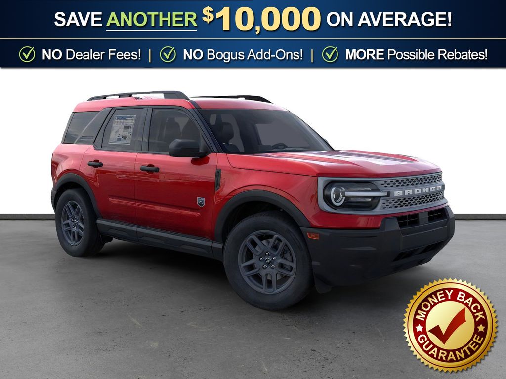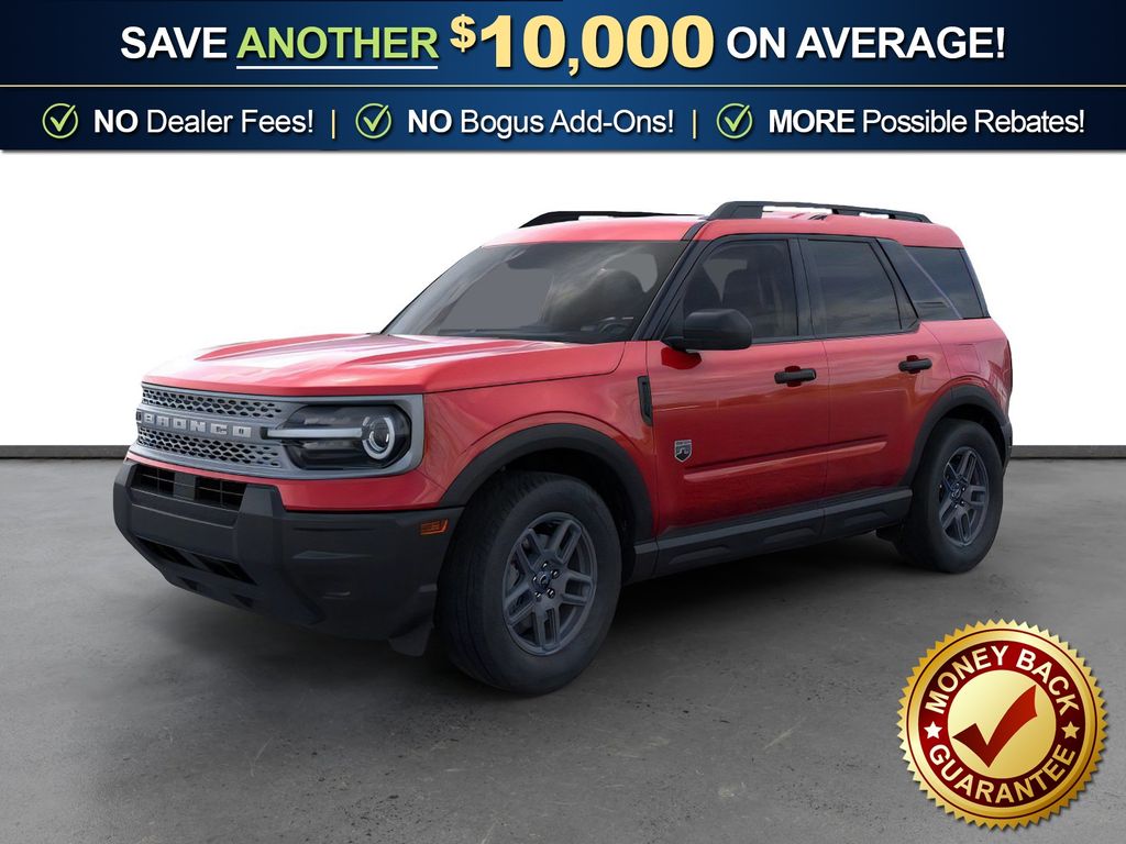 Ruby Red Metallic Tinted Clearcoat 2026 Ford Bronco Sport Big Bend NFT 4WD 8-Speed Automatic 1.5L EcoBoost 4-Wheel Disc Brakes, 6 Speakers, ABS brakes, Air Conditioning, Alloy wheels, AM/FM radio: SiriusXM with 360L, AM/FM Stereo, Apple CarPlay/Android Auto, Auto High-beam Headlights, Automatic temperature control, Brake assist, Cloth with Easy-to-Clean Front Bucket Seats, Compass, Delay-off headlights, Driver door bin, Driver vanity mirror, Dual front impact airbags, Dual front side impact airbags, Electronic Stability Control, Emergency communication system: SYNC 4 911 Assist, Exterior Parking Camera Rear, Ford Connectivity Package (1-Year Included), Four wheel independent suspension, Front anti-roll bar, Front Bucket Seats, Front Center Armrest, Front License Plate Bracket, Front reading lights, Fully automatic headlights, Heated door mirrors, Illuminated entry, Internet access capable: 5G Modem - Ford Connectivity Package, Knee airbag, Low tire pressure warning, Occupant sensing airbag, Outside temperature display, Overhead airbag, Overhead console, Panic alarm, Passenger door bin, Passenger vanity mirror, Power door mirrors, Power steering, Power windows, Radio data system, Rear anti-roll bar, Rear Parking Sensors, Rear reading lights, Rear seat center armrest, Rear window defroster, Rear window wiper, Remote keyless entry, Security system, SiriusXM with 360L, Speed control, Speed-sensing steering, Speed-Sensitive Wipers, Split folding rear seat, Steering wheel mounted audio controls, SYNC 4 with Enhanced Voice Recognition, Tachometer, Telescoping steering wheel, Tilt steering wheel, Traction control, Trip computer, Variably intermittent wipers, Wheels: 17" Carbonized Gray Painted Aluminum.
