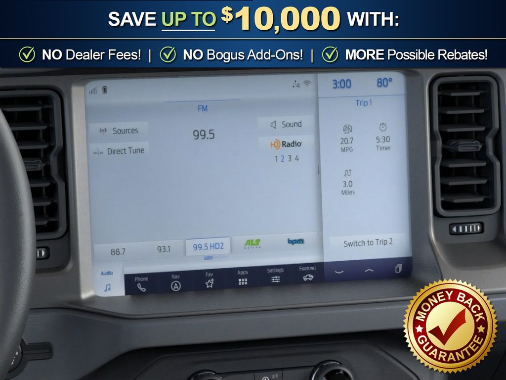 Marsh Gray 2026 Ford Bronco Big Bend NFT 4WD 10-Speed Automatic 2.3L EcoBoost I-4 4-Wheel Disc Brakes, 4.46 Axle Ratio, 7 Speakers, ABS brakes, Air Conditioning, Alloy wheels, AM/FM radio: SiriusXM with 360L, AM/FM Stereo, Auto High-beam Headlights, Black Appearance Package, Black Molded-in-Color Door Handles, Black Molded-in-Color Fender Flares, Black Molded-in-Color Sideview Mirror Caps, Black-Painted Molded-in-Color Grille, Brake assist, Cloth Bucket Seats, Compass, Delay-off headlights, Driver door bin, Driver vanity mirror, Dual front impact airbags, Dual front side impact airbags, Electronic Stability Control, Emergency communication system: 911 Assist, Exterior Parking Camera Rear, Ford Connectivity Package (1-Year Included), Front anti-roll bar, Front Bucket Seats, Front Center Armrest, Front License Plate Bracket, Front reading lights, Front wheel independent suspension, Fully automatic headlights, Hard Top Sound Deadening Headliner, Heated door mirrors, Illuminated entry, Integrated roll-over protection, Low tire pressure warning, Occupant sensing airbag, Outside temperature display, Overhead airbag, Overhead console, Panic alarm, Passenger door bin, Passenger vanity mirror, Power door mirrors, Power steering, Power windows, Radio data system, Rear-Window Defroster and Washer, Remote keyless entry, Security system, Shadow Black Painted Hard Top, SiriusXM with 360L, Speed control, Split folding rear seat, Steering wheel mounted audio controls, SYNC 4, Tachometer, Telescoping steering wheel, Tilt steering wheel, Traction control, Trip computer, Variably intermittent wipers, Wheels: 17" Carbonized Gray-Painted Aluminum.