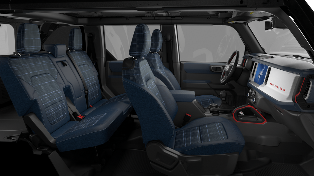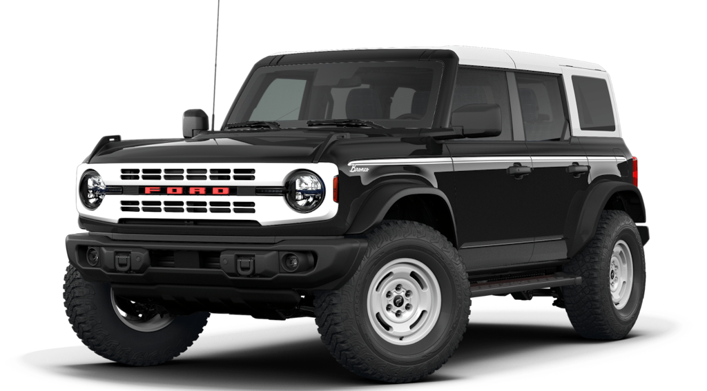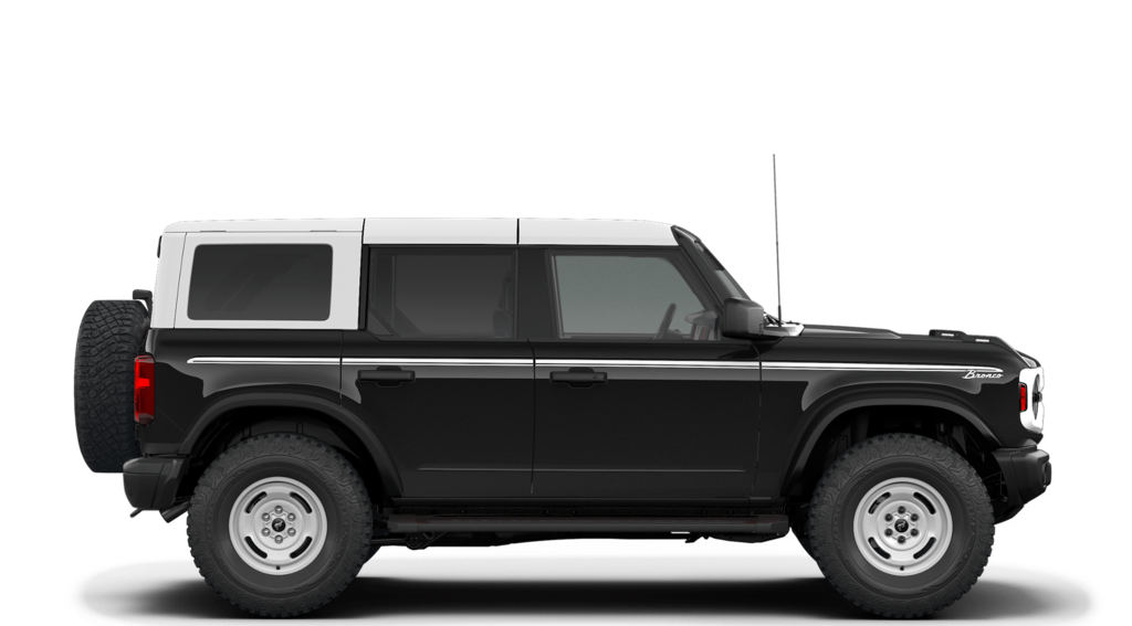 Shadow Black 2026 Ford Bronco Heritage Edition NFT 4WD 10-Speed Automatic 2.7L EcoBoost V6 4-Wheel Disc Brakes, 7 Speakers, ABS brakes, Air Conditioning, Alloy wheels, AM/FM radio: SiriusXM with 360L, AM/FM Stereo, Auto High-beam Headlights, Auto-dimming Rear-View mirror, Automatic temperature control, Brake assist, Compass, Connected Navigation, Convertible HardTop, Convertible roof lining, Delay-off headlights, Driver door bin, Driver vanity mirror, Dual front impact airbags, Dual front side impact airbags, Electronic Stability Control, Emergency communication system: 911 Assist, Exterior Parking Camera Rear, Ford Connectivity Package (1-Year Included), Front anti-roll bar, Front Bucket Seats, Front Center Armrest, Front dual zone A/C, Front fog lights, Front License Plate Bracket, Front reading lights, Front wheel independent suspension, Fully automatic headlights, Glass rear window, Heated door mirrors, Heated front seats, Heated steering wheel, Illuminated entry, Integrated roll-over protection, Internet access capable: FordPass Connect, Low tire pressure warning, Navigation system: Connected Navigation, Occupant sensing airbag, Outside temperature display, Overhead airbag, Overhead console, Panic alarm, Passenger door bin, Passenger vanity mirror, Plaid Cloth Front Heated Bucket Seats, Power door mirrors, Power steering, Power windows, Radio data system, Rear window defroster, Rear window wiper, Remote keyless entry, Security system, SiriusXM with 360L, Speed control, Split folding rear seat, Steering wheel mounted audio controls, SYNC 4, Tachometer, Telescoping steering wheel, Tilt steering wheel, Traction control, Trip computer, Variably intermittent wipers, Wheels: 17" Unique White.