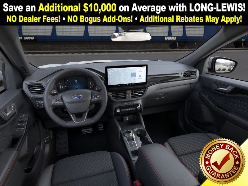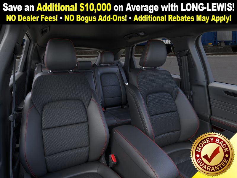 space silver metallic 2026 Ford Escape Hybrid ST-Line Select NFT AWD eCVT 2.5L iVCT 2.5L iVCT, 10-Way Power Driver's Seat w/Memory, 2.91 Axle Ratio, 4-Way Manual Front Passenger Seat, 4-Wheel Disc Brakes, 6 Speakers, 8-Way Power Driver Seat, ABS brakes, Adaptive Cruise Control with Stop-and-Go, Air Conditioning, Alloy wheels, AM/FM radio: SiriusXM 360L, Auto High-beam Headlights, Automatic temperature control, Brake assist, Bumpers: body-color, Compass, Connected Navigation (1-Year Included), Delay-off headlights, Digital Rear View Camera, Driver door bin, Driver vanity mirror, Dual front impact airbags, Dual front side impact airbags, Electronic Fuel Door Release, Electronic Stability Control, Emergency communication system: SYNC 4 911 Assist, Evasive Steering Assist, Ford App, Ford Co-Pilot360 Assist+, Four wheel independent suspension, Front anti-roll bar, Front Bucket Seats, Front Center Armrest, Front dual zone A/C, Front fog lights, Front License Plate Bracket, Front reading lights, Fully automatic headlights, Heated door mirrors, Heated front seats, Heated steering wheel, Illuminated entry, Intersection Assist, Knee airbag, Low tire pressure warning, Memory seat, Neutral Towing Capability, Occupant sensing airbag, Outside temperature display, Overhead airbag, Overhead console, Panic alarm, Partial Vinyl/Cloth Heated Front Sport Contour Bucket Seats with Red Stitching, Passenger door bin, Passenger vanity mirror, Pedestrian Alert Sounder, Power door mirrors, Power driver seat, Power Liftgate, Power steering, Power windows, Predictive Speed Assist, Radio data system, Radio: AM/FM Stereo with SiriusXM 360L, Rear anti-roll bar, Rear Parking Sensor, Rear reading lights, Rear seat center armrest, Rear window defroster, Rear window wiper, Remote keyless entry, Speed control, Speed-sensing steering, Speed-Sensitive Wipers, Split folding rear seat, Spoiler, Sport steering wheel, Steering wheel mounted audio controls, SYNC 4, SYNC 4 with Enhanced Voice Recognition, Tachometer, Tech Pack #1, Telescoping steering wheel, Tilt steering wheel, Traction control, Trip computer, Variably intermittent wipers, Wheels: 18" Rock Metallic Painted Aluminum, 2.5L iVCT.