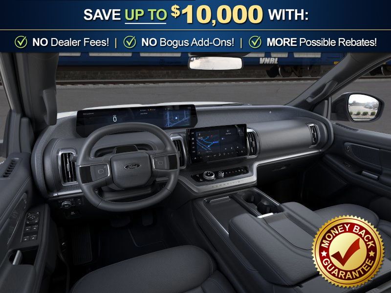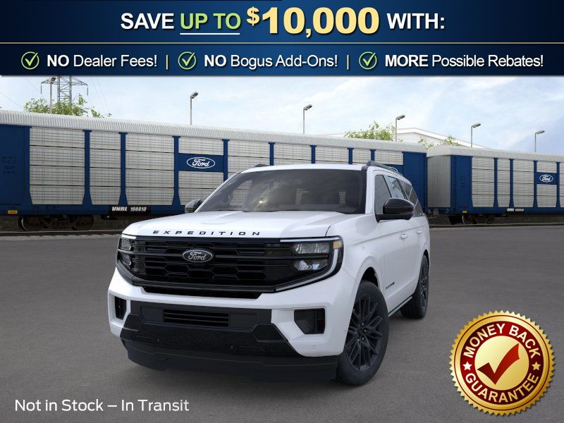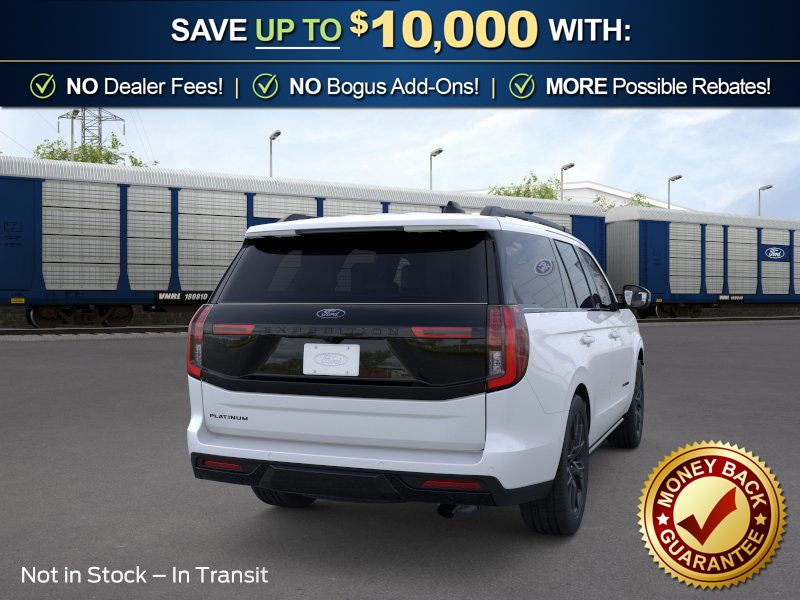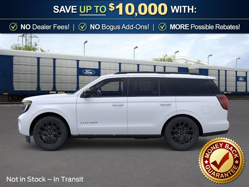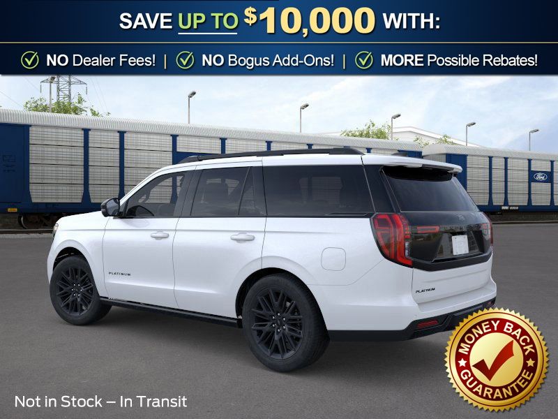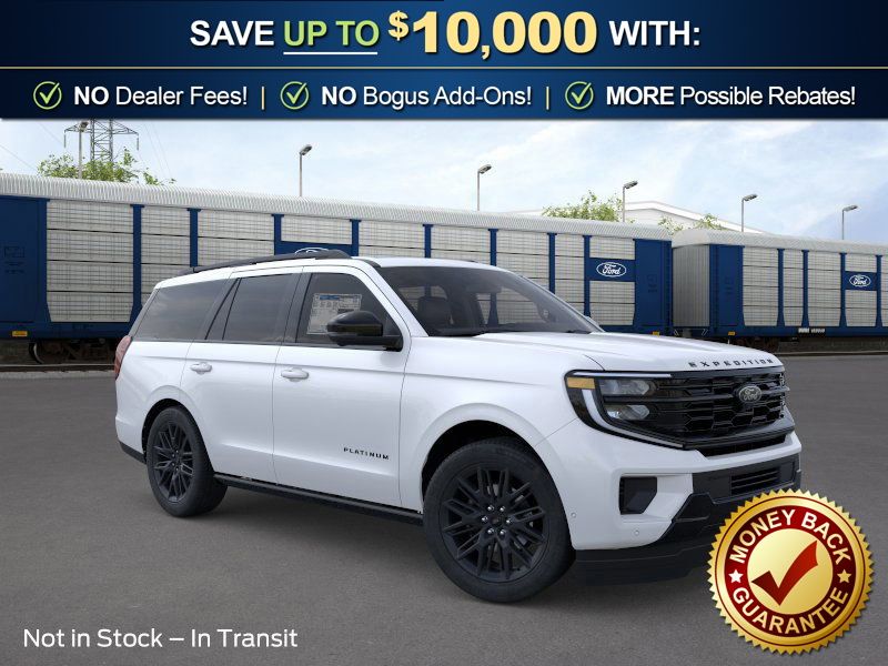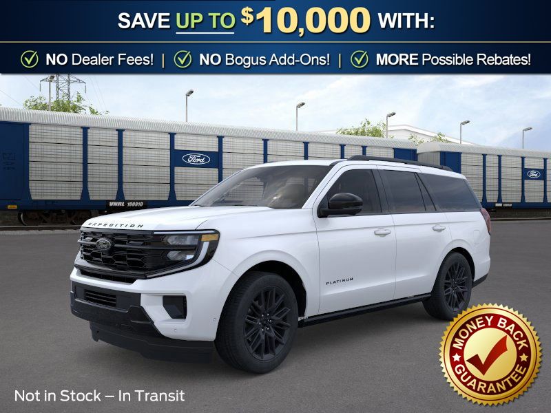 Star White Metallic Tri-Coat 2026 Ford Expedition Platinum NFT 4WD 10-Speed Automatic EcoBoost 3.5L V6 GTDi DOHC 24V Twin Turbocharged 4WD, 10 Speakers, 2nd Row Power-Folding Captain's Chairs, 3.73 Axle Ratio, 3rd row seats: split-bench, 4-Wheel Disc Brakes, ABS brakes, Air Conditioning, Alloy wheels, AM/FM radio: SiriusXM with 360L, Apple CarPlay/Android Auto, Auto High-beam Headlights, Auto-dimming door mirrors, Auto-dimming Rear-View mirror, Automatic temperature control, Black Belt Molding, Black Expedition Lettering on Hood, Black Headlamp Bezel with Ebony Trim Applique, Black Platinum Badge on Tailgate, Black Roof Rails, BlueCruise (equipment + 1-Year + 90-Day Plan), Brake assist, Bumpers: body-color, Carbon Black Front Bumper/Fascia, Compass, Delay-off headlights, Driver door bin, Driver vanity mirror, Dual front impact airbags, Dual front side impact airbags, Electronic Stability Control, Emergency communication system: 911 Assist, Exterior Parking Camera Rear, Ford Connectivity Package (1-Year Included), Ford Digital Experience, Four wheel independent suspension, Front anti-roll bar, Front Bucket Seats, Front Center Armrest, Front dual zone A/C, Front License Plate Bracket, Front reading lights, Fully automatic headlights, Garage door transmitter, Genuine wood dashboard insert, Genuine wood door panel insert, Heated and Ventilated Leather Front Captain's Chairs, Heated door mirrors, Heated front seats, Heated rear seats, Heated steering wheel, Illuminated entry, Intersection Assist, Leather steering wheel, Low tire pressure warning, Memory seat, Multicontour Active Motion Lthr Frnt Captains Chairs, Navigation System, Occupant sensing airbag, Outside temperature display, Overhead airbag, Overhead console, Panic alarm, Passenger door bin, Passenger vanity mirror, Power door mirrors, Power driver seat, Power moonroof: Vista Roof, Power passenger seat, Power steering, Power windows, Radio data system, Radio: B&O Sound System by Bang and Olufsen, Rain sensing wipers, Rear air conditioning, Rear anti-roll bar, Rear reading lights, Rear Side Windows Laminated Glass, Rear window defroster, Rear window wiper, Reclining 3rd row seat, Remote keyless entry, Security system, Signature Grille Lighting, SiriusXM with 360L, Speed control, Speed-sensing steering, Speed-Sensitive Wipers, Split folding rear seat, Spoiler, Stealth Appearance Package, Steering wheel memory, Steering wheel mounted audio controls, Tachometer, Telescoping steering wheel, Tilt steering wheel, Traction control, Trip computer, Turn signal indicator mirrors, Variably intermittent wipers, Ventilated front seats, Voltmeter, Wheels: 20" x 8.5" Ebony Bright Machined Aluminum, 4WD.