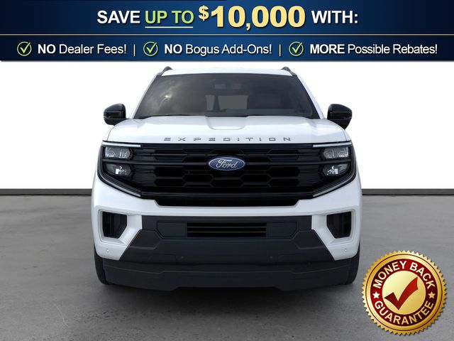 2026 Ford Expedition Active NFT Star White Metallic Tri-Coat Active NFT RWD 10-Speed Automatic EcoBoost 3.5L V6 GTDi DOHC 24V Twin Turbocharged 3.31 Axle Ratio, 3rd row seats: split-bench, 4-Wheel Disc Brakes, 6 Speakers, ABS brakes, ActiveX-Trimmed Front Heated Captain's Chairs, Air Conditioning, Alloy wheels, AM/FM radio: SiriusXM with 360L, Apple CarPlay/Android Auto, Auto High-beam Headlights, Auto-dimming Rear-View mirror, Automatic temperature control, BlueCruise (equipment + 1-Year + 90-Day Plan), Brake assist, Bumpers: body-color, Cloth Front Captain's Chairs, Compass, Delay-off headlights, Driver door bin, Driver vanity mirror, Dual front impact airbags, Dual front side impact airbags, Electronic Stability Control, Emergency communication system: 911 Assist, Exterior Parking Camera Rear, Ford Connectivity Package (1-Year Included), Ford Digital Experience, Four wheel independent suspension, Front anti-roll bar, Front Bucket Seats, Front Center Armrest, Front dual zone A/C, Front reading lights, Fully automatic headlights, Heated door mirrors, Illuminated entry, Low tire pressure warning, Navigation System, Occupant sensing airbag, Outside temperature display, Overhead airbag, Overhead console, Panic alarm, Passenger door bin, Passenger vanity mirror, Power door mirrors, Power driver seat, Power passenger seat, Power steering, Power windows, Radio data system, Radio: AM/FM Stereo with MP3 Capable, Rear air conditioning, Rear anti-roll bar, Rear reading lights, Rear window defroster, Rear window wiper, Reclining 3rd row seat, Remote keyless entry, Security system, SiriusXM with 360L, Speed control, Speed-sensing steering, Speed-Sensitive Wipers, Split folding rear seat, Spoiler, Steering wheel mounted audio controls, Tachometer, Telescoping steering wheel, Tilt steering wheel, Traction control, Trip computer, Variably intermittent wipers, Voltmeter, Wheels: 18" x 8.5" Dark Alloy Painted Aluminum, Wheels: 20" x 8.5" Bright Machined Aluminum.