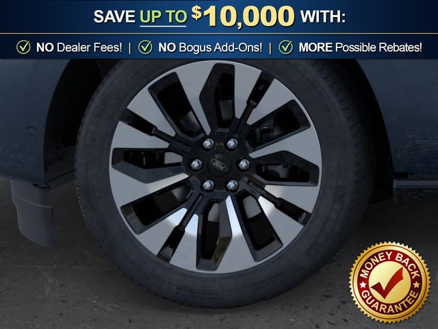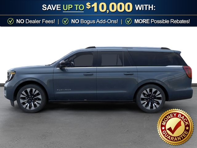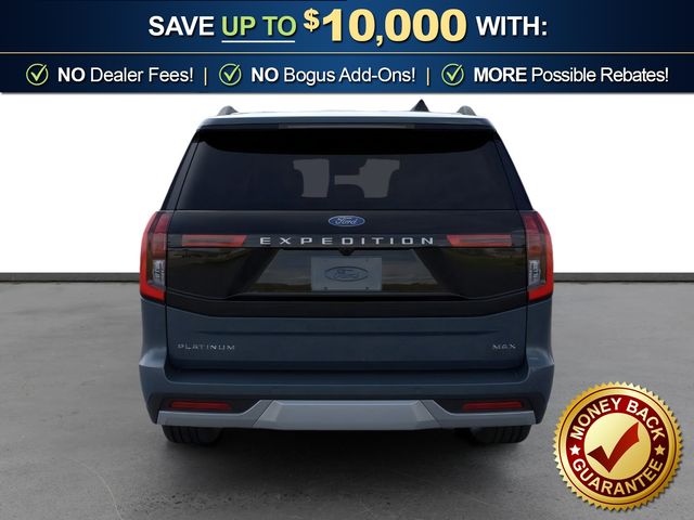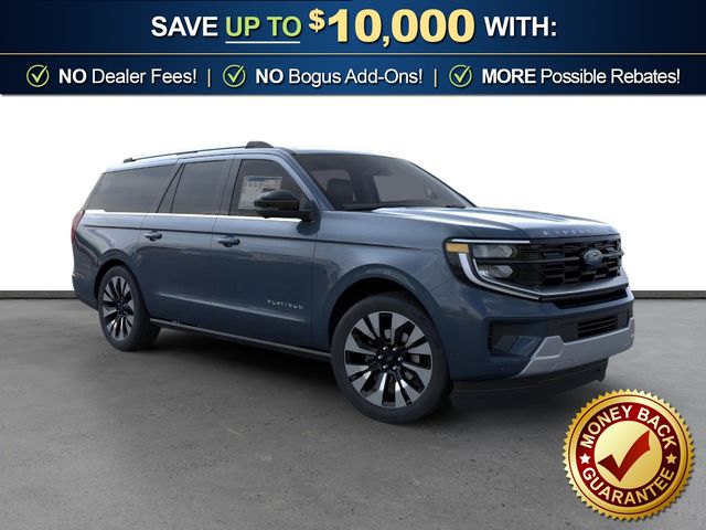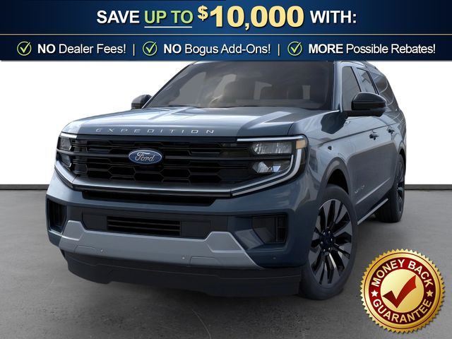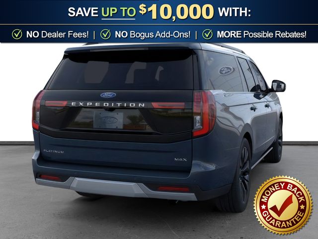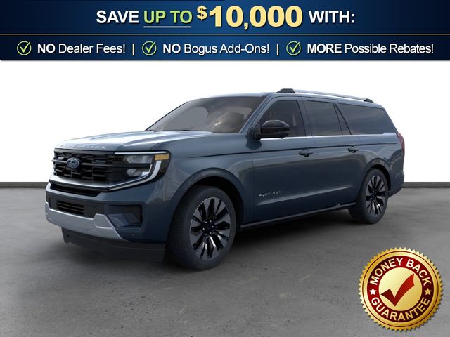 2026 Ford Expedition Max Platinum NFT Stone Blue Metallic Platinum NFT 4WD 10-Speed Automatic EcoBoost 3.5L V6 GTDi DOHC 24V Twin Turbocharged 10 Speakers, 2nd Row Power-Folding Captain's Chairs, 3.73 Axle Ratio, 3rd row seats: split-bench, 4-Wheel Disc Brakes, ABS brakes, Air Conditioning, Alloy wheels, AM/FM radio: SiriusXM with 360L, Apple CarPlay/Android Auto, Auto High-beam Headlights, Auto-dimming door mirrors, Auto-dimming Rear-View mirror, Automatic temperature control, Black Onyx Painted Power Deployable Running Boards, Brake assist, Bumpers: body-color, Compass, Delay-off headlights, Driver door bin, Driver vanity mirror, Driver's Package, Dual front impact airbags, Dual front side impact airbags, Electronic Stability Control, Emergency communication system: 911 Assist, Exterior Parking Camera Rear, Ford Connectivity Package (1-Year Included), Ford Digital Experience, Four wheel independent suspension, Front anti-roll bar, Front Bucket Seats, Front Center Armrest, Front dual zone A/C, Front reading lights, Fully automatic headlights, Garage door transmitter, Genuine wood dashboard insert, Genuine wood door panel insert, Heated and Ventilated Leather Front Captain's Chairs, Heated door mirrors, Heated front seats, Heated rear seats, Heated steering wheel, Illuminated entry, Intersection Assist, Leather steering wheel, Low tire pressure warning, Memory seat, Multicontour Active Motion Lthr Frnt Captains Chairs, Navigation System, Occupant sensing airbag, Outside temperature display, Overhead airbag, Overhead console, Panic alarm, Passenger door bin, Passenger vanity mirror, Power door mirrors, Power driver seat, Power moonroof: Vista Roof, Power passenger seat, Power steering, Power windows, Radio data system, Radio: B&O Play Unleashed, Radio: B&O Sound System by Bang and Olufsen, Rain sensing wipers, Rear air conditioning, Rear anti-roll bar, Rear reading lights, Rear window defroster, Rear window wiper, Reclining 3rd row seat, Remote keyless entry, Security system, SiriusXM with 360L, Speed control, Speed-sensing steering, Speed-Sensitive Wipers, Split folding rear seat, Spoiler, Steering wheel memory, Steering wheel mounted audio controls, Tachometer, Telescoping steering wheel, Tilt steering wheel, Traction control, Trip computer, Turn signal indicator mirrors, Variably intermittent wipers, Ventilated front seats, Voltmeter, Wheels: 20" x 8.5" Ebony Bright Machined Aluminum, Wheels: 22" x 9.0" Ebony Bright Machined Face Aluminum.