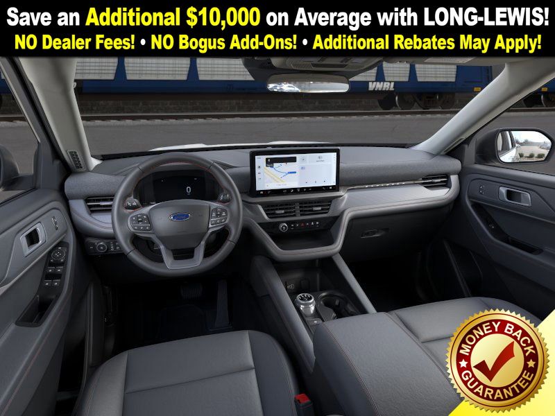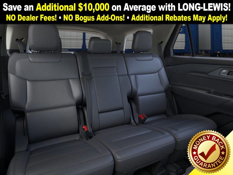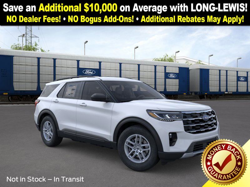 Space White Metallic 2026 Ford Explorer Active NFT RWD 10-Speed Automatic 2.3L EcoBoost I-4 2nd Row 35/30/35 Bench with E-Z Entry and Armrest, 3rd row seats: bench, 4-Wheel Disc Brakes, 6 Speakers, ABS brakes, Active Comfort Package, Air Conditioning, Alloy wheels, AM/FM radio: SiriusXM with 360L, AM/FM Stereo, Apple CarPlay/Android Auto, Auto High-beam Headlights, Automatic temperature control, Brake assist, Bumpers: body-color, Compass, Delay-off headlights, Driver door bin, Driver vanity mirror, Dual front impact airbags, Dual front side impact airbags, Electronic Stability Control, Emergency communication system: 911 Assist, Exterior Parking Camera Rear, Four wheel independent suspension, Front anti-roll bar, Front Bucket Seats, Front Center Armrest, Front dual zone A/C, Front Fascia, Front License Plate Bracket, Front reading lights, Fully automatic headlights, Heated ActiveX Seating Material Captain's Chairs, Heated door mirrors, Heated Steering Wheel, Illuminated entry, Internet access capable: FordPass Connect 5G, Knee airbag, Low tire pressure warning, Navigation System, Occupant sensing airbag, Outside temperature display, Overhead airbag, Overhead console, Panic alarm, Passenger door bin, Passenger vanity mirror, Power driver seat, Power steering, Power windows, Rear air conditioning, Rear anti-roll bar, Rear reading lights, Rear window defroster, Rear window wiper, Remote keyless entry, Remote Start System, Second Row Hvac Controls, SecuriCode Keyless Entry Keypad, Security system, Speed control, Speed-sensing steering, Speed-Sensitive Wipers, Split folding rear seat, Spoiler, Steering wheel mounted audio controls, Tachometer, Telescoping steering wheel, Tilt steering wheel, Traction control, Trip computer, Unique Cloth Captain's Chairs, Variably intermittent wipers, Wheels: 18" Sparkle Silver-Painted Aluminum.