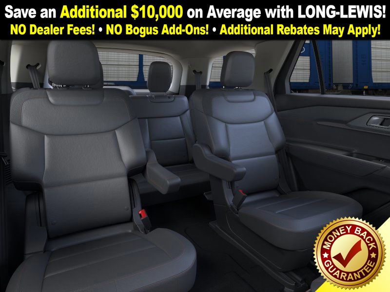 Agate Black Metallic 2026 Ford Explorer Active NFT RWD 10-Speed Automatic 2.3L EcoBoost I-4 3rd row seats: bench, 4-Wheel Disc Brakes, 6 Speakers, ABS brakes, Active Comfort Package, Air Conditioning, Alloy wheels, AM/FM radio: SiriusXM with 360L, AM/FM Stereo, Apple CarPlay/Android Auto, Auto High-beam Headlights, Automatic temperature control, Brake assist, Bumpers: body-color, Compass, Delay-off headlights, Driver door bin, Driver vanity mirror, Dual front impact airbags, Dual front side impact airbags, Electronic Stability Control, Emergency communication system: 911 Assist, Exterior Parking Camera Rear, Four wheel independent suspension, Front anti-roll bar, Front Bucket Seats, Front Center Armrest, Front dual zone A/C, Front Fascia, Front License Plate Bracket, Front reading lights, Fully automatic headlights, Heated ActiveX Seating Material Captain's Chairs, Heated door mirrors, Heated Steering Wheel, Illuminated entry, Internet access capable: FordPass Connect 5G, Knee airbag, Low tire pressure warning, Navigation System, Occupant sensing airbag, Outside temperature display, Overhead airbag, Overhead console, Panic alarm, Passenger door bin, Passenger vanity mirror, Power driver seat, Power steering, Power windows, Rear air conditioning, Rear anti-roll bar, Rear reading lights, Rear window defroster, Rear window wiper, Remote keyless entry, Remote Start System, Second Row Hvac Controls, SecuriCode Keyless Entry Keypad, Security system, Speed control, Speed-sensing steering, Speed-Sensitive Wipers, Split folding rear seat, Spoiler, Steering wheel mounted audio controls, Tachometer, Telescoping steering wheel, Tilt steering wheel, Traction control, Trip computer, Unique Cloth Captain's Chairs, Variably intermittent wipers, Wheels: 18" Sparkle Silver-Painted Aluminum.