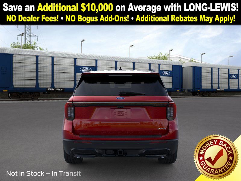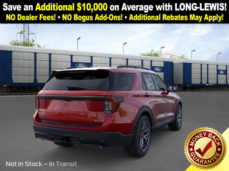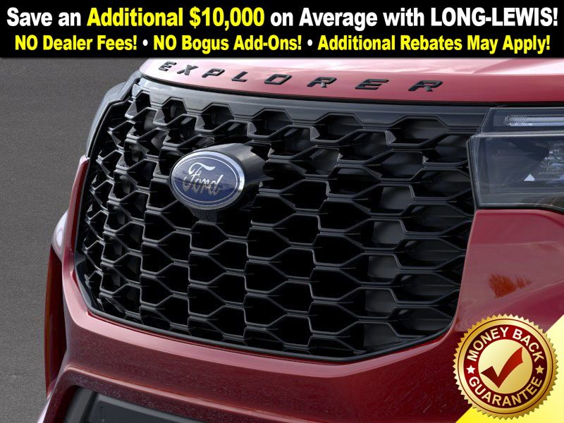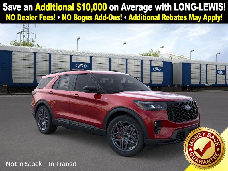 Rapid Red Metallic Tinted Clearcoat 2026 Ford Explorer ST-Line NFT 4WD 10-Speed Automatic 2.3L EcoBoost I-4 4WD, 10 Speakers, 110V/150W AC Power Outlet, 2nd Row Captain's Chairs w/E-Z Entry and Armrest, 2nd Row Heated Seats, 3rd row seats: bench, 4-Wheel Disc Brakes, ABS brakes, Air Conditioning, Alloy wheels, AM/FM radio: SiriusXM with 360L, Ambient Lighting, Apple CarPlay/Android Auto, Auto High-beam Headlights, Auto-Dimming Interior Rear-View Mirror, Automatic temperature control, BlueCruise (equipment + 1-Year + 90-Day Plan), BlueCruise Hardware, Brake assist, Bumpers: body-color, Compass, Delay-off headlights, Driver door bin, Driver vanity mirror, Dual front impact airbags, Dual front side impact airbags, Electronic Stability Control, Emergency communication system: 911 Assist, Exterior Parking Camera Rear, Four wheel independent suspension, Front anti-roll bar, Front Bucket Seats, Front Center Armrest, Front dual zone A/C, Front fog lights, Front License Plate Bracket, Front reading lights, Fully automatic headlights, Garage door transmitter, Heated door mirrors, Heated front seats, Heated steering wheel, Heated Unique Cloth Captain's Chairs, Illuminated entry, Internet access capable: FordPass Connect 5G, Knee airbag, Leather steering wheel, Low tire pressure warning, Manual-Folding Sideview Mirrors, Memory Driver's Seat, Navigation System, Occupant sensing airbag, Outside temperature display, Overhead airbag, Overhead console, Panic alarm, Panoramic Fixed Glass Roof with Power Shade, Passenger door bin, Passenger vanity mirror, Performance Brakes, Power door mirrors, Power driver seat, Power Liftgate, Power passenger seat, Power steering, Power windows, Premium Package, Radio: B&O Sound System by Bang and Olufsen, Rain-Sensing Wipers (front Only), Rear air conditioning, Rear anti-roll bar, Rear reading lights, Rear window defroster, Rear window wiper, Red Painted Performance Front and Rear Brake Calipers, Remote keyless entry, SecuriCode Keyless Entry Keypad, Security system, Speed control, Speed-sensing steering, Speed-Sensitive Wipers, Split folding rear seat, Spoiler, ST-Line Street Pack, Steering wheel mounted audio controls, Tachometer, Telescoping steering wheel, Tilt steering wheel, Traction control, Trip computer, Variably intermittent wipers, Wheels: 20" Ebony-Painted Machined Aluminum, Wheels: 21" Magnetite-Painted Aluminum, 4WD.