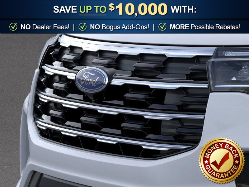Space White Metallic 2026 Ford Explorer Active NFT RWD 10-Speed Automatic 2.3L EcoBoost I-4 3rd row seats: bench, 4-Wheel Disc Brakes, 6 Speakers, ABS brakes, Air Conditioning, Alloy wheels, AM/FM radio: SiriusXM with 360L, AM/FM Stereo, Apple CarPlay/Android Auto, Auto High-beam Headlights, Automatic temperature control, Brake assist, Bumpers: body-color, Compass, Delay-off headlights, Driver door bin, Driver vanity mirror, Dual front impact airbags, Dual front side impact airbags, Electronic Stability Control, Emergency communication system: 911 Assist, Exterior Parking Camera Rear, Four wheel independent suspension, Front anti-roll bar, Front Bucket Seats, Front Center Armrest, Front dual zone A/C, Front License Plate Bracket, Front reading lights, Fully automatic headlights, Heated door mirrors, Illuminated entry, Knee airbag, Low tire pressure warning, Navigation System, Occupant sensing airbag, Outside temperature display, Overhead airbag, Overhead console, Panic alarm, Passenger door bin, Passenger vanity mirror, Power door mirrors, Power driver seat, Power steering, Power windows, Rear air conditioning, Rear anti-roll bar, Rear reading lights, Rear window defroster, Rear window wiper, Remote keyless entry, Security system, Speed control, Speed-sensing steering, Speed-Sensitive Wipers, Split folding rear seat, Spoiler, Steering wheel mounted audio controls, Tachometer, Telescoping steering wheel, Tilt steering wheel, Traction control, Trip computer, Variably intermittent wipers, Wheels: 18" Sparkle Silver-Painted Aluminum.
