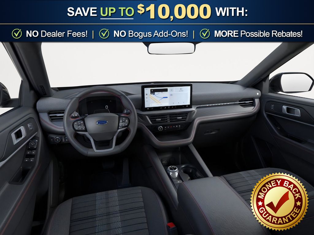 Carbonized Gray Metallic 2026 Ford Explorer ST-Line NFT RWD 10-Speed Automatic 2.3L EcoBoost I-4 10 Speakers, 110V/150W AC Power Outlet, 2nd Row Captain's Chairs w/E-Z Entry and Armrest, 2nd Row Heated Seats, 3rd row seats: bench, 4-Wheel Disc Brakes, ABS brakes, Air Conditioning, Alloy wheels, AM/FM radio: SiriusXM with 360L, Ambient Lighting, Apple CarPlay/Android Auto, Auto High-beam Headlights, Auto-Dimming Interior Rear-View Mirror, Automatic temperature control, BlueCruise (equipment + 1-Year + 90-Day Plan), BlueCruise Hardware, Brake assist, Bumpers: body-color, Compass, Delay-off headlights, Driver door bin, Driver vanity mirror, Dual front impact airbags, Dual front side impact airbags, Electronic Stability Control, Emergency communication system: 911 Assist, Exterior Parking Camera Rear, Four wheel independent suspension, Front anti-roll bar, Front Bucket Seats, Front Center Armrest, Front dual zone A/C, Front fog lights, Front License Plate Bracket, Front reading lights, Fully automatic headlights, Garage door transmitter, Heated door mirrors, Heated front seats, Heated steering wheel, Heated Unique Cloth Captain's Chairs, Illuminated entry, Knee airbag, Leather steering wheel, Low tire pressure warning, Manual-Folding Sideview Mirrors, Memory Driver's Seat, Navigation System, Occupant sensing airbag, Outside temperature display, Overhead airbag, Overhead console, Panic alarm, Passenger door bin, Passenger vanity mirror, Performance Brakes, Power door mirrors, Power driver seat, Power Liftgate, Power passenger seat, Power steering, Power windows, Premium Package, Radio: B&O Sound System by Bang and Olufsen, Rain-Sensing Wipers (front Only), Rear air conditioning, Rear anti-roll bar, Rear reading lights, Rear window defroster, Rear window wiper, Red Painted Performance Front and Rear Brake Calipers, Remote keyless entry, SecuriCode Keyless Entry Keypad, Security system, Speed control, Speed-sensing steering, Speed-Sensitive Wipers, Split folding rear seat, Spoiler, ST-Line Street Pack, Steering wheel mounted audio controls, Tachometer, Telescoping steering wheel, Tilt steering wheel, Traction control, Trip computer, Variably intermittent wipers, Wheels: 20" Ebony-Painted Machined Aluminum, Wheels: 21" Magnetite-Painted Aluminum.