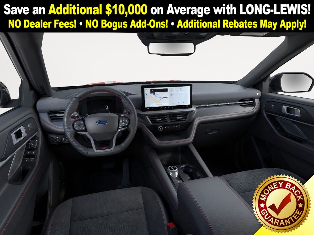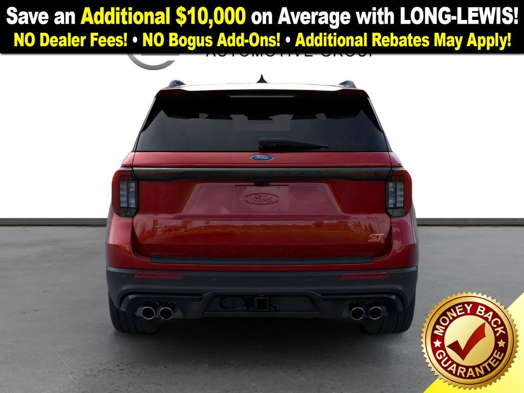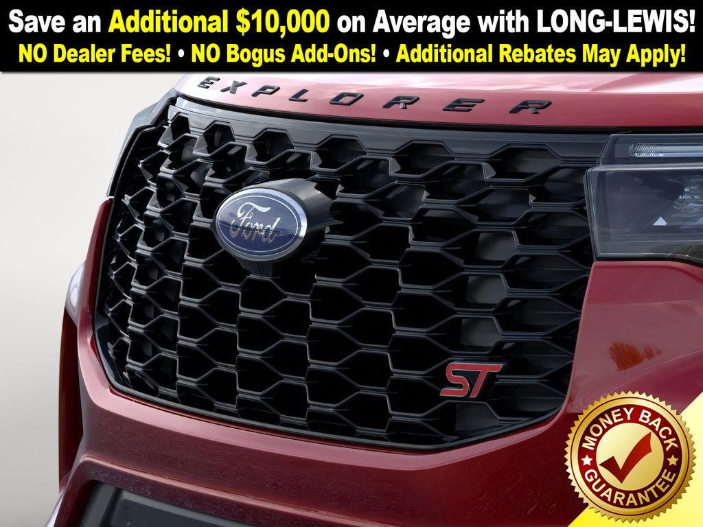Rapid Red Metallic Tinted Clearcoat 2026 Ford Explorer ST NFT RWD 10-Speed Automatic 3.0L EcoBoost V6 10 Speakers, 3rd row seats: bench, 4-Wheel Disc Brakes, ABS brakes, Air Conditioning, Alloy wheels, AM/FM radio: SiriusXM with 360L, Apple CarPlay/Android Auto, Auto High-beam Headlights, Auto-dimming door mirrors, Auto-dimming Rear-View mirror, Automatic temperature control, Brake assist, Bumpers: body-color, Compass, Delay-off headlights, Driver door bin, Driver vanity mirror, Dual front impact airbags, Dual front side impact airbags, Electronic Stability Control, Emergency communication system: 911 Assist, Exterior Parking Camera Rear, Four wheel independent suspension, Front anti-roll bar, Front Bucket Seats, Front Center Armrest, Front dual zone A/C, Front fog lights, Front License Plate Bracket, Front reading lights, Fully automatic headlights, Garage door transmitter, Heated door mirrors, Heated front seats, Heated rear seats, Heated steering wheel, Heated/Ventilated Miko Captain's Chairs, Illuminated entry, Internet access capable: FordPass Connect 5G, Knee airbag, Leather steering wheel, Low tire pressure warning, Memory seat, Multicontour Seats with Front Active Motion, Navigation System, Occupant sensing airbag, Outside temperature display, Overhead airbag, Overhead console, Panic alarm, Panoramic Fixed Glass Roof with Power Shade, Passenger door bin, Passenger vanity mirror, Power door mirrors, Power driver seat, Power Liftgate, Power passenger seat, Power steering, Power windows, Radio: B&O Sound System by Bang & Olufsen, Radio: B&O Sound System by Bang and Olufsen, Rain sensing wipers, Rear air conditioning, Rear anti-roll bar, Rear reading lights, Rear window defroster, Rear window wiper, Remote Control Front Windows, Remote keyless entry, SecuriCode Keyless Entry Keypad, Security system, Speed control, Speed-sensing steering, Speed-Sensitive Wipers, Split folding rear seat, Spoiler, Sport steering wheel, Steering wheel mounted audio controls, Sun and Sound Package, Tachometer, Telescoping steering wheel, Tilt steering wheel, Traction control, Trip computer, Turn signal indicator mirrors, Variably intermittent wipers, Ventilated front seats, Wheels: 21" Magnetite-Painted Aluminum.