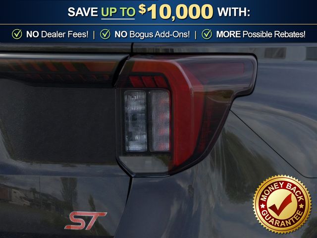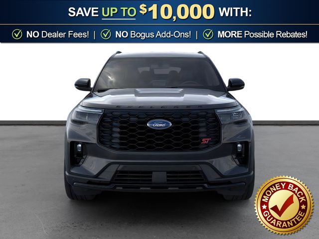 2026 Ford Explorer ST NFT Agate Black Metallic ST NFT 4WD 10-Speed Automatic 3.0L EcoBoost V6 4WD, 10 Speakers, 3rd row seats: bench, 4-Wheel Disc Brakes, ABS brakes, Air Conditioning, Alloy wheels, AM/FM radio: SiriusXM with 360L, Apple CarPlay/Android Auto, Auto High-beam Headlights, Auto-dimming door mirrors, Auto-dimming Rear-View mirror, Automatic temperature control, Brake assist, Bumpers: body-color, Compass, Delay-off headlights, Driver door bin, Driver vanity mirror, Dual front impact airbags, Dual front side impact airbags, Electronic Stability Control, Emergency communication system: 911 Assist, Exterior Parking Camera Rear, Four wheel independent suspension, Front anti-roll bar, Front Bucket Seats, Front Center Armrest, Front dual zone A/C, Front fog lights, Front reading lights, Fully automatic headlights, Garage door transmitter, Heated door mirrors, Heated front seats, Heated rear seats, Heated steering wheel, Heated/Ventilated Miko Suede Captain's Chairs, Illuminated entry, Knee airbag, Leather steering wheel, Low tire pressure warning, Memory seat, Multicontour Seats with Front Active Motion, Navigation System, Occupant sensing airbag, Outside temperature display, Overhead airbag, Overhead console, Panic alarm, Panoramic Fixed Glass Roof with Power Shade, Passenger door bin, Passenger vanity mirror, Power door mirrors, Power driver seat, Power Liftgate, Power passenger seat, Power steering, Power windows, Radio: B&O Sound System by Bang & Olufsen, Radio: B&O Sound System by Bang and Olufsen, Rain sensing wipers, Rear air conditioning, Rear anti-roll bar, Rear reading lights, Rear window defroster, Rear window wiper, Remote Control Front Windows, Remote keyless entry, Security system, Speed control, Speed-sensing steering, Speed-Sensitive Wipers, Split folding rear seat, Spoiler, Sport steering wheel, Steering wheel mounted audio controls, Sun and Sound Package, Tachometer, Telescoping steering wheel, Tilt steering wheel, Traction control, Trip computer, Turn signal indicator mirrors, Variably intermittent wipers, Ventilated front seats, Wheels: 21" Magnetite-Painted Aluminum, 4WD.