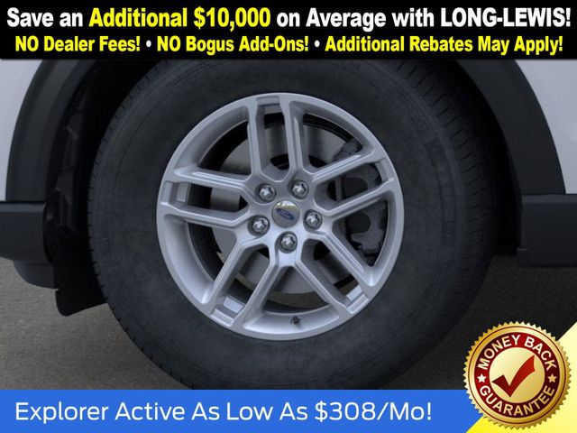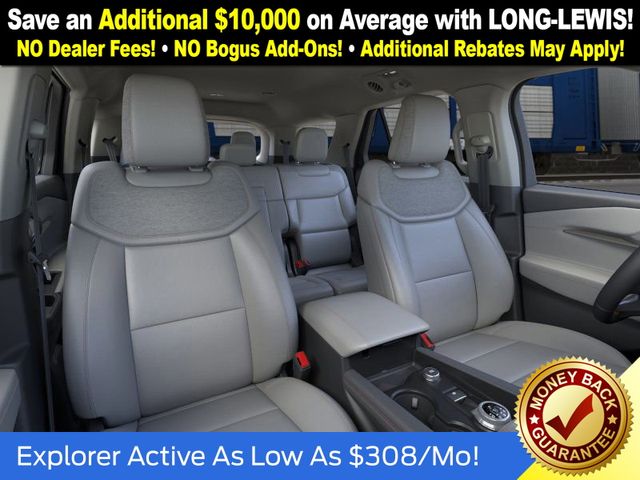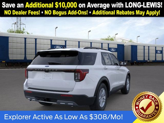 New Price! Space White Metallic 2026 Ford Explorer Active NFT RWD 10-Speed Automatic 2.3L EcoBoost I-4 2nd Row 35/30/35 Bench with E-Z Entry and Armrest, 3rd row seats: bench, 4-Wheel Disc Brakes, 6 Speakers, 8 USB Ports, ABS brakes, Active Badging, Active Comfort Package, Active Noise Cancellation, Air Conditioning, Alloy wheels, AM/FM radio: SiriusXM with 360L, AM/FM Stereo, Apple CarPlay/Android Auto, Auto High-beam Headlights, Automatic temperature control, Black Lower Bodyside Cladding with Chrome Accent, Black Roof-Rack Side Rails, Brake assist, Bumpers: body-color, Compass, Delay-off headlights, Driver door bin, Driver vanity mirror, Dual front impact airbags, Dual front side impact airbags, Electronic Stability Control, Emergency communication system: 911 Assist, Equipment Group 200A Standard Package, Exterior Parking Camera Rear, Four wheel independent suspension, Front anti-roll bar, Front Bucket Seats, Front Center Armrest, Front dual zone A/C, Front Fascia, Front reading lights, Fully automatic headlights, Heated ActiveX Seating Material Captain's Chairs, Heated door mirrors, Heated Steering Wheel, Illuminated entry, Internet access capable: FordPass Connect 5G, Knee airbag, Low tire pressure warning, Manual-Folding Sideview Mirrors, Navigation System, Occupant sensing airbag, Outside temperature display, Overhead airbag, Overhead console, Panic alarm, Passenger door bin, Passenger vanity mirror, Power driver seat, Power Liftgate, Power steering, Power windows, Rear air conditioning, Rear anti-roll bar, Rear reading lights, Rear window defroster, Rear window wiper, Remote keyless entry, Remote Start System, Second Row Hvac Controls, Security system, Speed control, Speed-sensing steering, Speed-Sensitive Wipers, Split folding rear seat, Spoiler, Steering wheel mounted audio controls, Tachometer, Telescoping steering wheel, Tilt steering wheel, Traction control, Trip computer, Unique Cloth Captain's Chairs, Unique Cloth Heated Captain's Chairs, Variably intermittent wipers, Vinyl-Wrapped Steering Wheel, Wheels: 18" Sparkle Silver-Painted Aluminum.