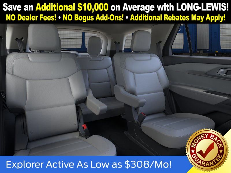 Agate Black Metallic 2026 Ford Explorer Active NFT RWD 10-Speed Automatic 2.3L EcoBoost I-4 3rd row seats: bench, 4-Wheel Disc Brakes, 6 Speakers, ABS brakes, Air Conditioning, Alloy wheels, AM/FM radio: SiriusXM with 360L, AM/FM Stereo, Apple CarPlay/Android Auto, Auto High-beam Headlights, Automatic temperature control, Brake assist, Bumpers: body-color, Compass, Delay-off headlights, Driver door bin, Driver vanity mirror, Dual front impact airbags, Dual front side impact airbags, Electronic Stability Control, Emergency communication system: 911 Assist, Exterior Parking Camera Rear, Four wheel independent suspension, Front anti-roll bar, Front Bucket Seats, Front Center Armrest, Front dual zone A/C, Front License Plate Bracket, Front reading lights, Fully automatic headlights, Heated door mirrors, Illuminated entry, Knee airbag, Low tire pressure warning, Navigation System, Occupant sensing airbag, Outside temperature display, Overhead airbag, Overhead console, Panic alarm, Passenger door bin, Passenger vanity mirror, Power door mirrors, Power driver seat, Power steering, Power windows, Rear air conditioning, Rear anti-roll bar, Rear reading lights, Rear window defroster, Rear window wiper, Remote keyless entry, Security system, Speed control, Speed-sensing steering, Speed-Sensitive Wipers, Split folding rear seat, Spoiler, Steering wheel mounted audio controls, Tachometer, Telescoping steering wheel, Tilt steering wheel, Traction control, Trip computer, Variably intermittent wipers, Wheels: 18" Sparkle Silver-Painted Aluminum.