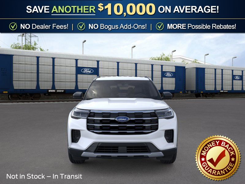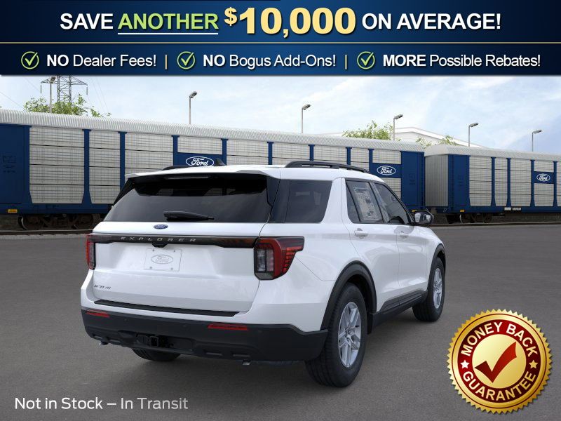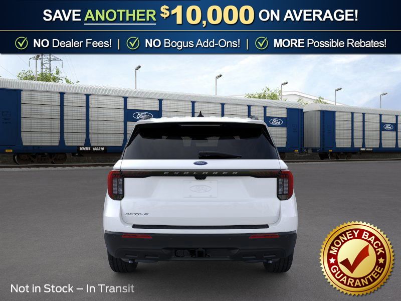 Star White Metallic Tri-Coat 2026 Ford Explorer Active NFT RWD 10-Speed Automatic 2.3L EcoBoost I-4 2nd Row 35/30/35 Bench with E-Z Entry and Armrest, 3rd row seats: bench, 4-Wheel Disc Brakes, 6 Speakers, ABS brakes, Air Conditioning, Alloy wheels, AM/FM radio: SiriusXM with 360L, AM/FM Stereo, Apple CarPlay/Android Auto, Auto High-beam Headlights, Automatic temperature control, Brake assist, Bumpers: body-color, Compass, Delay-off headlights, Driver door bin, Driver vanity mirror, Dual front impact airbags, Dual front side impact airbags, Electronic Stability Control, Emergency communication system: 911 Assist, Exterior Parking Camera Rear, Four wheel independent suspension, Front anti-roll bar, Front Bucket Seats, Front Center Armrest, Front dual zone A/C, Front License Plate Bracket, Front reading lights, Fully automatic headlights, Heated door mirrors, Illuminated entry, Knee airbag, Low tire pressure warning, Navigation System, Occupant sensing airbag, Outside temperature display, Overhead airbag, Overhead console, Panic alarm, Passenger door bin, Passenger vanity mirror, Power door mirrors, Power driver seat, Power steering, Power windows, Rear air conditioning, Rear anti-roll bar, Rear reading lights, Rear window defroster, Rear window wiper, Remote keyless entry, Security system, Speed control, Speed-sensing steering, Speed-Sensitive Wipers, Split folding rear seat, Spoiler, Steering wheel mounted audio controls, Tachometer, Telescoping steering wheel, Tilt steering wheel, Traction control, Trip computer, Variably intermittent wipers, Wheels: 18" Sparkle Silver-Painted Aluminum.