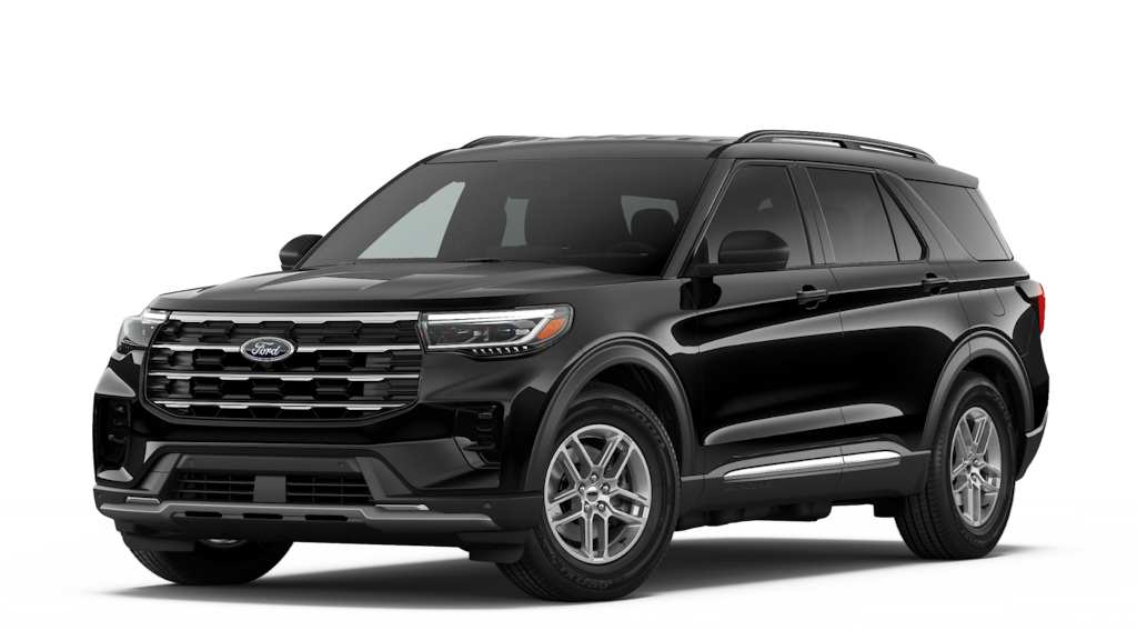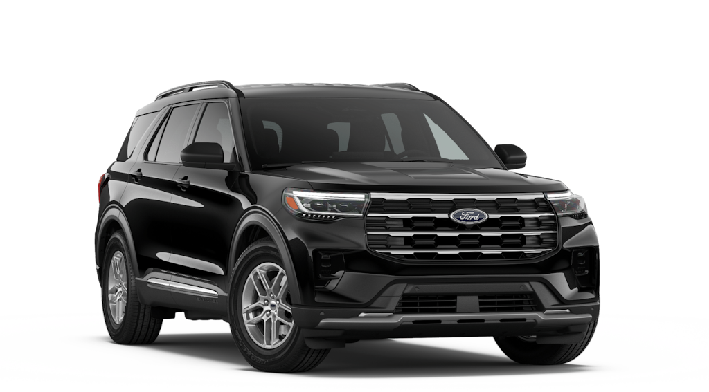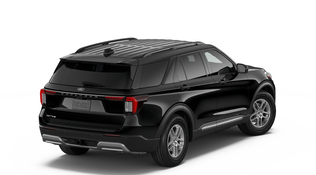 Agate Black Metallic 2026 Ford Explorer Active NFT RWD 10-Speed Automatic 2.3L EcoBoost I-4 3rd row seats: bench, 4-Wheel Disc Brakes, 6 Speakers, ABS brakes, Air Conditioning, Alloy wheels, AM/FM radio: SiriusXM with 360L, AM/FM Stereo, Apple CarPlay/Android Auto, Auto High-beam Headlights, Automatic temperature control, Brake assist, Bumpers: body-color, Compass, Delay-off headlights, Driver door bin, Driver vanity mirror, Dual front impact airbags, Dual front side impact airbags, Electronic Stability Control, Emergency communication system: 911 Assist, Exterior Parking Camera Rear, Four wheel independent suspension, Front anti-roll bar, Front Bucket Seats, Front Center Armrest, Front dual zone A/C, Front License Plate Bracket, Front reading lights, Fully automatic headlights, Heated door mirrors, Illuminated entry, Knee airbag, Low tire pressure warning, Navigation System, Occupant sensing airbag, Outside temperature display, Overhead airbag, Overhead console, Panic alarm, Passenger door bin, Passenger vanity mirror, Power door mirrors, Power driver seat, Power steering, Power windows, Rear air conditioning, Rear anti-roll bar, Rear reading lights, Rear window defroster, Rear window wiper, Remote keyless entry, Security system, Speed control, Speed-sensing steering, Speed-Sensitive Wipers, Split folding rear seat, Spoiler, Steering wheel mounted audio controls, Tachometer, Telescoping steering wheel, Tilt steering wheel, Traction control, Trip computer, Variably intermittent wipers, Wheels: 18" Sparkle Silver-Painted Aluminum.
