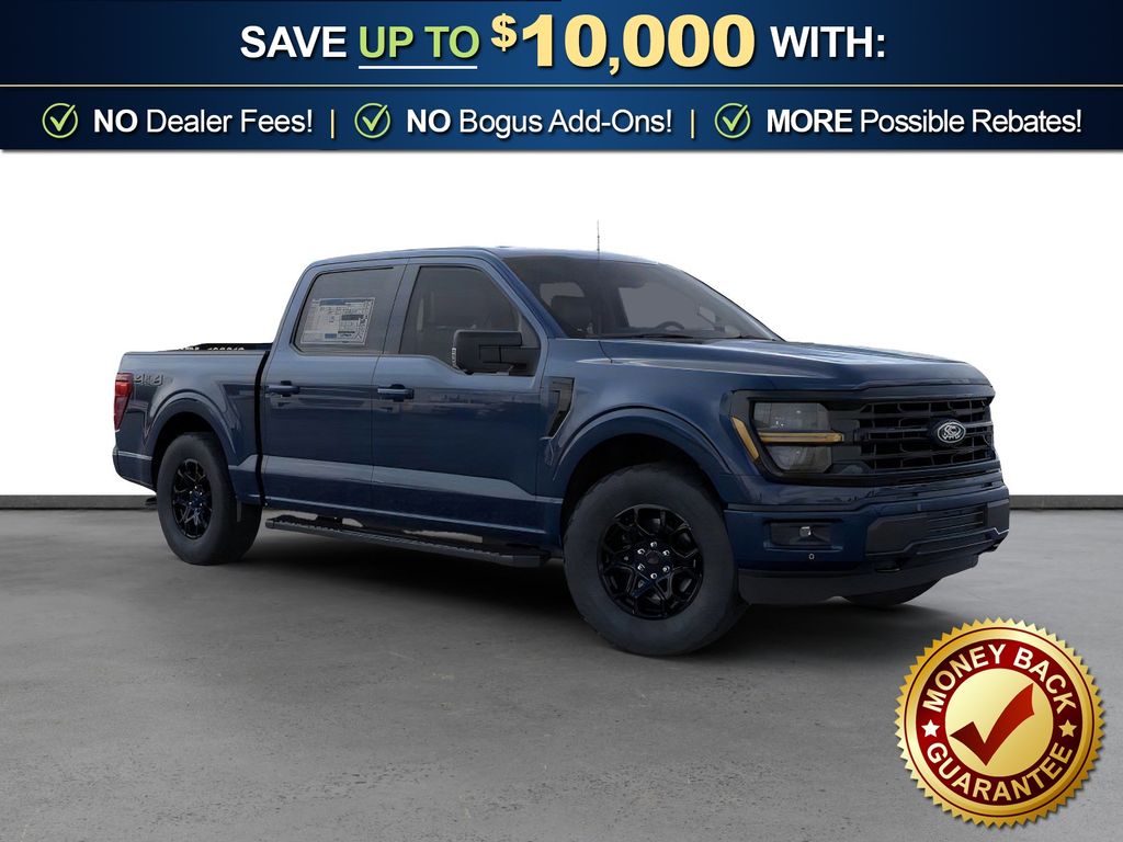 Antimatter Blue Metallic 2026 Ford F-150 XLT NFT 4WD 10-Speed Automatic 5.0L V8 4WD, 18" Painted Aluminum Wheels, 4-Wheel Disc Brakes, 6 Speakers, ABS brakes, Air Conditioning, Alloy wheels, AM/FM radio: SiriusXM with 360L, Auto High-beam Headlights, BlueCruise (equipment + 1 Year + 90-Day Plan), Brake assist, Bumpers: body-color, Cloth 40/Console/40 Front Seats, Compass, Console Worksurface, Delay-off headlights, Driver door bin, Driver vanity mirror, Dual front impact airbags, Dual front side impact airbags, Electronic Stability Control, Emergency communication system: SYNC 4 911 Assist, Ford Connectivity Package (1-Year Included), Front anti-roll bar, Front Center Armrest, Front fog lights, Front License Plate Bracket, Front reading lights, Front wheel independent suspension, Fully automatic headlights, Heated door mirrors, Illuminated entry, Internet access capable: 5G Modem - Ford Connectivity Package, Low tire pressure warning, Mobile Office Package, Occupant sensing airbag, Outside temperature display, Overhead airbag, Overhead console, Panic alarm, Partitioned Lockable Rear Storage, Passenger door bin, Passenger vanity mirror, Power door mirrors, Power steering, Power windows, Radio data system, Radio: AM/FM Stereo with SiriusXM 360L, Rear Parking Sensors, Rear reading lights, Rear step bumper, Rear window defroster, Remote keyless entry, Security system, Speed control, Split folding rear seat, Steering wheel mounted audio controls, SYNC 4 with Enhanced Voice Recognition, Tachometer, Telescoping steering wheel, Tilt steering wheel, Tow/Haul Package, Traction control, Trip computer, Unique Sport Cloth 40/Console/40 Front-Seats, Variably intermittent wipers, XLT Black Appearance Package, 4WD.