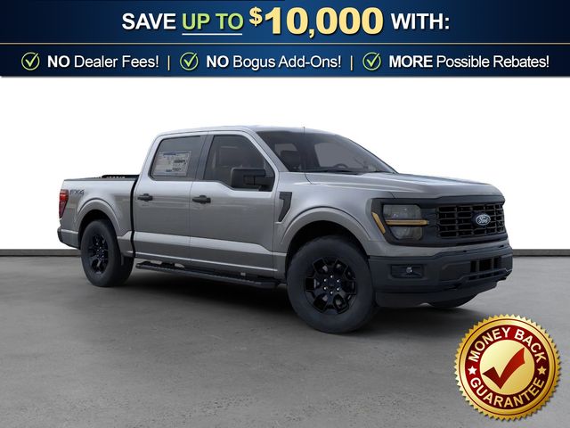 2026 Ford F-150 STX NFT Carbonized Gray Metallic STX NFT 4WD 10-Speed Automatic 2.7L V6 EcoBoost 4WD, 12" Cluster Display, 4-Wheel Disc Brakes, 6 Speakers, 6" Black Running Boards, ABS brakes, Air Conditioning, Alloy wheels, AM/FM radio: SiriusXM with 360L, Argent Front/Rear Bumper, Auto High-beam Headlights, Brake assist, Bumpers: body-color, Compass, Delay-off headlights, Driver door bin, Dual Exhaust with Black Tips, Dual front impact airbags, Dual front side impact airbags, Electronic Locking with 3.55 Axle Ratio, Electronic Stability Control, Emergency communication system: SYNC 4 911 Assist, Equipment Group 201A FX4, Ford Connectivity Package (1-Year Included), Front anti-roll bar, Front Bucket Seats, Front Center Armrest, Front reading lights, Front wheel independent suspension, Fully automatic headlights, FX4 Box Decal, GVWR: 6,650 lbs Payload Package, Heated door mirrors, Illuminated entry, Internet access capable: 5G Modem - Ford Connectivity Package, LED Fog Lamps with LED Cornering Lamp, Low tire pressure warning, Monotube Rear Shocks, Occupant sensing airbag, Off-Road Tuned Front Shock Absorbers, Outside temperature display, Overhead airbag, Overhead console, Panic alarm, Passenger door bin, Passenger vanity mirror, Power door mirrors, Power steering, Power windows, Radio data system, Radio: AM/FM Stereo with SiriusXM 360L, Rear step bumper, Rear window defroster, Remote keyless entry, Security system, Speed control, Split folding rear seat, Steering wheel mounted audio controls, STX Badge in Fender Vent, SYNC 4 with Enhanced Voice Recognition, Tachometer, Telescoping steering wheel, Tilt steering wheel, Traction control, Tray Style Floor Liner, Trip computer, Unique Cloth 40/Console/40 Front Seats, Unique Sport Cloth 40/Console/40 Front-Seats, Variably intermittent wipers, Wheels: 18" Black Painted Aluminum, Wheels: 18" Gloss Black, 4WD.