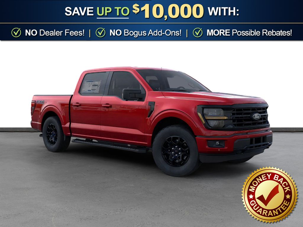 Ruby Red Metallic Tinted Clearcoat 2026 Ford F-150 XLT NFT 4WD 10-Speed Automatic 3.5L V6 EcoBoost 4WD, 18" Painted Aluminum Wheels, 4-Wheel Disc Brakes, 6 Speakers, ABS brakes, Air Conditioning, Alloy wheels, AM/FM radio: SiriusXM with 360L, Auto High-beam Headlights, Brake assist, Bumpers: body-color, Compass, Delay-off headlights, Driver door bin, Driver vanity mirror, Dual front impact airbags, Dual front side impact airbags, Electronic Stability Control, Emergency communication system: SYNC 4 911 Assist, Ford Connectivity Package (1-Year Included), Front anti-roll bar, Front Center Armrest, Front fog lights, Front License Plate Bracket, Front reading lights, Front wheel independent suspension, Fully automatic headlights, FX4 Off-Road Package, Heated door mirrors, Illuminated entry, Internet access capable: 5G Modem - Ford Connectivity Package, Low tire pressure warning, Occupant sensing airbag, Outside temperature display, Overhead airbag, Overhead console, Panic alarm, Passenger door bin, Passenger vanity mirror, Power door mirrors, Power steering, Power windows, Radio data system, Radio: AM/FM Stereo with SiriusXM 360L, Rear Parking Sensors, Rear reading lights, Rear step bumper, Rear window defroster, Remote keyless entry, Security system, Speed control, Split folding rear seat, Steering wheel mounted audio controls, SYNC 4 with Enhanced Voice Recognition, Tachometer, Telescoping steering wheel, Tilt steering wheel, Tow/Haul Package, Traction control, Trip computer, Unique Sport Cloth 40/Console/40 Front-Seats, Variably intermittent wipers, XLT Black Appearance Package, 4WD.