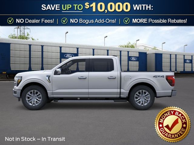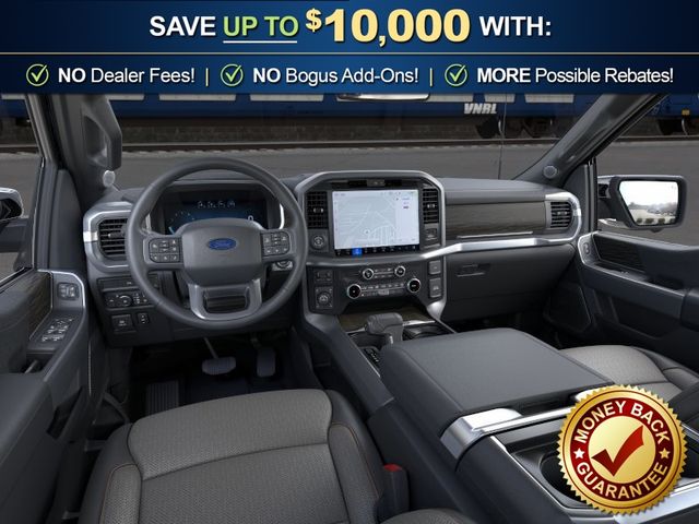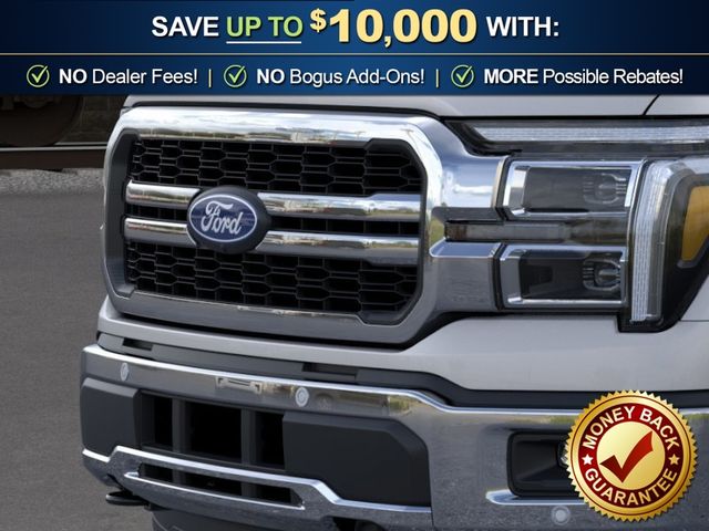 2026 Ford F-150 Lariat NFT Iconic Silver Metallic Lariat NFT 4WD 10-Speed Automatic 3.5L V6 EcoBoost 4WD, 4 Pickup Box Tie-Down Plates, 4-Wheel Disc Brakes, 8 Speakers, ABS brakes, ActiveX Trimmed Bucket Seats, ActiveX Trimmed Smoked Truffle Bucket Seats, Air Conditioning, Alloy wheels, AM/FM radio: SiriusXM with 360L, Auto High-beam Headlights, Auto-dimming door mirrors, Auto-dimming Rear-View mirror, Automatic temperature control, Bed Storage Boxes, Bed Utility Package, Brake assist, Bumpers: chrome, Chrome wheels, Compass, Console Worksurface, Delay-off headlights, Driver door bin, Driver vanity mirror, Dual front impact airbags, Dual front side impact airbags, Electronic Stability Control, Emergency communication system: SYNC 4 911 Assist, Ford Connectivity Package (1-Year Included), Front anti-roll bar, Front Bucket Seats, Front Center Armrest, Front dual zone A/C, Front fog lights, Front reading lights, Front wheel independent suspension, Fully automatic headlights, Garage door transmitter, Heated door mirrors, Heated front seats, Heated steering wheel, Illuminated entry, Integrated Trailer Brake Controller, Internet access capable: 5G Modem - Ford Connectivity Package, LED Box Lighting, Low tire pressure warning, Memory seat, Mobile Office Package, Navigation system: Connected Navigation, Occupant sensing airbag, Outside temperature display, Overhead airbag, Overhead console, Panic alarm, Partitioned Lockable Rear Storage, Passenger door bin, Passenger vanity mirror, Power door mirrors, Power driver seat, Power passenger seat, Power steering, Power windows, Radio data system, Radio: B&O Sound System by Bang and Olufsen, Rain sensing wipers, Rear reading lights, Rear seat center armrest, Rear step bumper, Rear window defroster, Remote keyless entry, Security system, Speed control, Split folding rear seat, Steering wheel mounted audio controls, SYNC 4 with Enhanced Voice Recognition, Tachometer, Tailgate Step with Work Surface, Telescoping steering wheel, Tilt steering wheel, Tow/Haul Package, Traction control, Trip computer, Turn signal indicator mirrors, Variably intermittent wipers, Ventilated front seats, Wheels: 18" Chrome-Like PVD, Wireless Charging, 4WD.