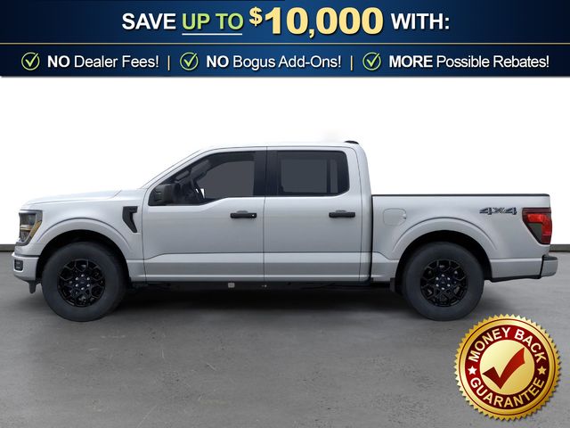 Iconic Silver Metallic 2026 Ford F-150 STX NFT 4WD 10-Speed Automatic 2.7L V6 EcoBoost 3.55 Axle Ratio, 4-Wheel Disc Brakes, 6 Speakers, ABS brakes, Air Conditioning, Alloy wheels, AM/FM radio: SiriusXM with 360L, Auto High-beam Headlights, Brake assist, Bumpers: body-color, Compass, Delay-off headlights, Driver door bin, Dual front impact airbags, Dual front side impact airbags, Electronic Stability Control, Emergency communication system: SYNC 4 911 Assist, Equipment Group 200B Standard, Ford Connectivity Package (1-Year Included), Front anti-roll bar, Front Bucket Seats, Front Center Armrest, Front reading lights, Front wheel independent suspension, Fully automatic headlights, GVWR: 6,650 lbs Payload Package, Heated door mirrors, Illuminated entry, Internet access capable: 5G Modem - Ford Connectivity Package, Low tire pressure warning, Occupant sensing airbag, Outside temperature display, Overhead airbag, Overhead console, Panic alarm, Passenger door bin, Passenger vanity mirror, Power door mirrors, Power steering, Power windows, Radio data system, Radio: AM/FM Stereo with SiriusXM 360L, Rear Parking Sensors, Rear step bumper, Rear window defroster, Remote keyless entry, Security system, Speed control, Split folding rear seat, Steering wheel mounted audio controls, SYNC 4 with Enhanced Voice Recognition, Tachometer, Telescoping steering wheel, Tilt steering wheel, Traction control, Trip computer, Unique Sport Cloth 40/Console/40 Front-Seats, Variably intermittent wipers, Wheels: 18" Gloss Black.