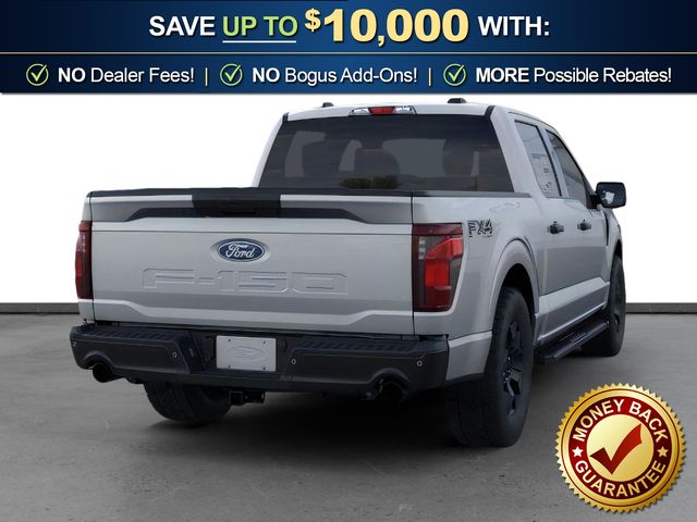 2026 Ford F-150 STX NFT Iconic Silver Metallic STX NFT 4WD 10-Speed Automatic 2.7L V6 EcoBoost 4WD, 12" Cluster Display, 4-Wheel Disc Brakes, 6 Speakers, 6" Black Running Boards, ABS brakes, Air Conditioning, Alloy wheels, AM/FM radio: SiriusXM with 360L, Argent Front/Rear Bumper, Auto High-beam Headlights, Brake assist, Bumpers: body-color, Compass, Delay-off headlights, Driver door bin, Dual Exhaust with Black Tips, Dual front impact airbags, Dual front side impact airbags, Electronic Locking with 3.55 Axle Ratio, Electronic Stability Control, Emergency communication system: SYNC 4 911 Assist, Equipment Group 201A FX4, Ford Connectivity Package (1-Year Included), Front anti-roll bar, Front Bucket Seats, Front Center Armrest, Front reading lights, Front wheel independent suspension, Fully automatic headlights, FX4 Box Decal, GVWR: 6,650 lbs Payload Package, Heated door mirrors, Illuminated entry, Integrated Trailer Brake Controller, Internet access capable: 5G Modem - Ford Connectivity Package, LED Fog Lamps with LED Cornering Lamp, Low tire pressure warning, Monotube Rear Shocks, Occupant sensing airbag, Off-Road Tuned Front Shock Absorbers, Outside temperature display, Overhead airbag, Overhead console, Panic alarm, Passenger door bin, Passenger vanity mirror, Power door mirrors, Power steering, Power windows, Radio data system, Radio: AM/FM Stereo with SiriusXM 360L, Rear step bumper, Rear window defroster, Remote keyless entry, Security system, Speed control, Split folding rear seat, Steering wheel mounted audio controls, STX Badge in Fender Vent, SYNC 4 with Enhanced Voice Recognition, Tachometer, Telescoping steering wheel, Tilt steering wheel, Traction control, Tray Style Floor Liner, Trip computer, Unique Cloth 40/Console/40 Front Seats, Unique Sport Cloth 40/Console/40 Front-Seats, Variably intermittent wipers, Wheels: 18" Black Painted Aluminum, Wheels: 18" Gloss Black, 4WD.