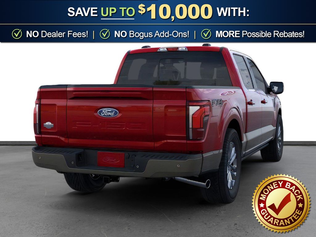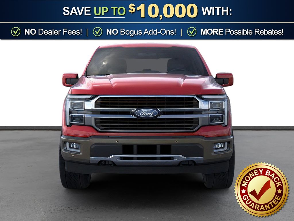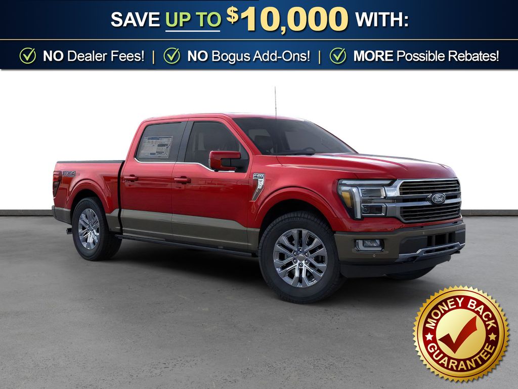 Ruby Red Metallic Tinted Clearcoat 2026 Ford F-150 King Ranch NFT 4WD 10-Speed Automatic 3.5L V6 EcoBoost 4WD, 4-Wheel Disc Brakes, 4x4 FX4 Off-Road Bodyside Decal, 8 Speakers, ABS brakes, Adjustable pedals, Air Conditioning, Alloy wheels, AM/FM radio: SiriusXM with 360L, Auto High-beam Headlights, Auto tilt-away steering wheel, Auto-dimming door mirrors, Auto-dimming Rear-View mirror, Automatic temperature control, Brake assist, Chrome wheels, Compass, Delay-off headlights, Driver door bin, Driver vanity mirror, Driver's Side SecuriCode Keyless-Entry Keypad, Dual front impact airbags, Dual front side impact airbags, Electronic Locking with 3.55 Axle Ratio, Electronic Stability Control, Emergency communication system: SYNC 4 911 Assist, Ford Connectivity Package (1-Year Included), Front anti-roll bar, Front Bucket Seats, Front Center Armrest, Front dual zone A/C, Front fog lights, Front License Plate Bracket, Front reading lights, Front wheel independent suspension, Fully automatic headlights, FX4 Off-Road Package, Garage door transmitter, Genuine wood dashboard insert, GVWR: 7,400 lbs Payload Package, Heated door mirrors, Heated front seats, Heated rear seats, Heated steering wheel, Hill Descent Control, Illuminated entry, Internet access capable: 5G Modem - Ford Connectivity Package, King Ranch Multicontour Leather Bucket Seats, Leather steering wheel, Low tire pressure warning, Memory seat, Navigation system: Connected Navigation, Occupant sensing airbag, Off-Road Tuned Front Shock Absorbers, Outside temperature display, Overhead airbag, Overhead console, Panic alarm, Passenger door bin, Passenger vanity mirror, Pedal memory, Power door mirrors, Power driver seat, Power passenger seat, Power steering, Power windows, Pro Access Tailgate, Radio data system, Radio: B&O Sound System by Bang and Olufsen, Rain sensing wipers, Rear reading lights, Rear seat center armrest, Rear step bumper, Rear window defroster, Remote keyless entry, Security system, Speed control, Split folding rear seat, Steering wheel memory, Steering wheel mounted audio controls, SYNC 4 with Enhanced Voice Recognition, Tachometer, Telescoping steering wheel, Tilt steering wheel, Traction control, Trip computer, Turn signal indicator mirrors, Twin Panel Moonroof, Variably intermittent wipers, Ventilated front seats, Wheels: 20" Chrome-Like PVD, 4WD.
