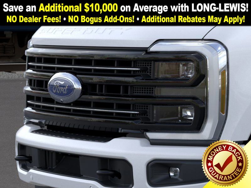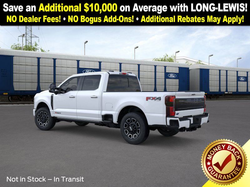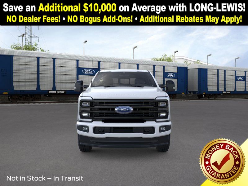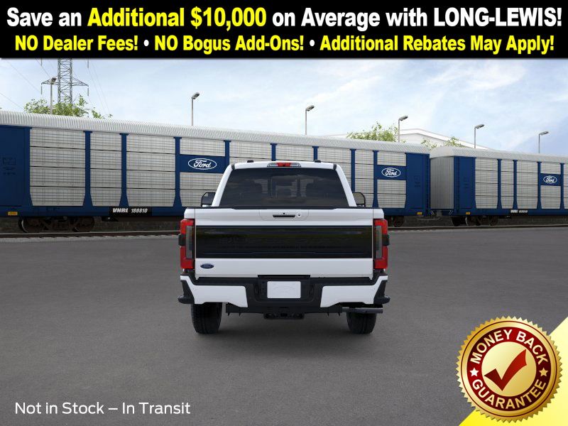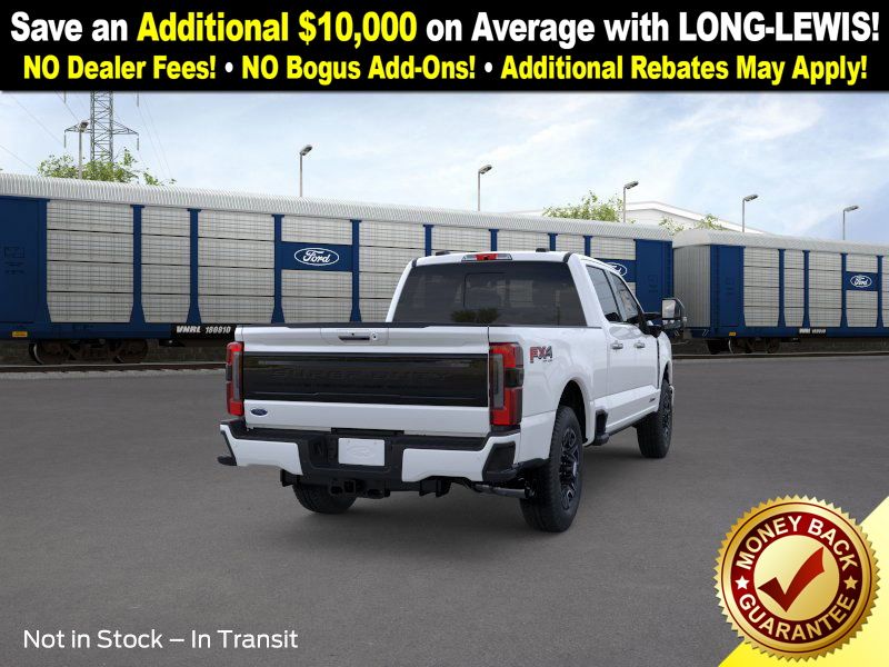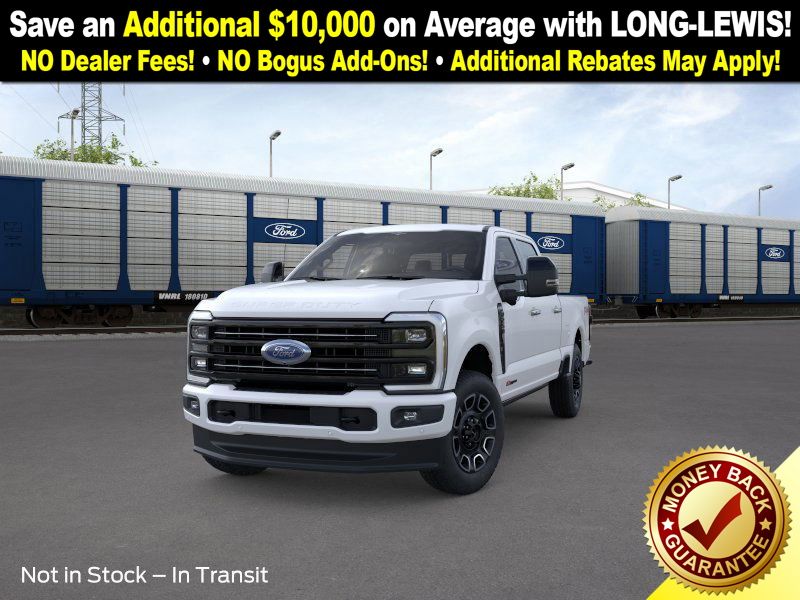 Star White Metallic Tri-Coat 2026 Ford F-250SD Platinum NFT 4WD 10-Speed Automatic 6.7L High Output Power Stroke V8 Diesel 4WD, 4-Wheel Disc Brakes, 410 Amp Dual Alternators, 5th Wheel/Gooseneck Hitch Prep Package, ABS brakes, Adjustable pedals, Air Conditioning, Alloy wheels, AM/FM radio: SiriusXM with 360L, Auto High-beam Headlights, Auto-dimming Rear-View mirror, Automatic temperature control, Brake assist, Compass, Delay-off headlights, Driver door bin, Driver vanity mirror, Dual front impact airbags, Dual front side impact airbags, Electronic Stability Control, Emergency communication system: SYNC 4 911 Assist, Engine Block Heater, F-250 >10K GVWR Package, Flow-Through Console, Ford Connectivity Package (1-Year Included), Front anti-roll bar, Front Bucket Seats, Front Center Armrest, Front dual zone A/C, Front fog lights, Front reading lights, Fully automatic headlights, FX4 Off-Road Package, Garage door transmitter, Heated door mirrors, Heated front seats, Heated rear seats, Heated steering wheel, High Capacity 11.6" Axle Upgrade Package, Hill Descent Control, Illuminated entry, Internet access capable: 5G Modem - Ford Connectivity Package, Low tire pressure warning, Max Recline Seats, Memory seat, Navigation system: Connected Navigation, Off-Road Specifically Tuned Shock Absorbers, Outside temperature display, Overhead airbag, Overhead console, Panic alarm, Passenger door bin, Passenger vanity mirror, Pedal memory, Power door mirrors, Power driver seat, Power passenger seat, Power steering, Power windows, Pro Power Onboard - 2kW, Radio: B&O Unleashed Sound System by Bang & Olufsen, Rain sensing wipers, Rapid-Heat Supplemental Cab Heater, Rear reading lights, Rear seat center armrest, Rear step bumper, Rear window defroster, Remote keyless entry, Security system, SiriusXM w/360L, Speed control, Split folding rear seat, Steering wheel mounted audio controls, SYNC 4 w/Enhanced Voice Recognition, Tachometer, Telescoping steering wheel, Tilt steering wheel, Traction control, Trip computer, Turn signal indicator mirrors, Twin Panel Power Moonroof, Unique FX4 Off-Road Box Decal, Upfitter Switches (6), Variably intermittent wipers, Ventilated front seats, 4WD.