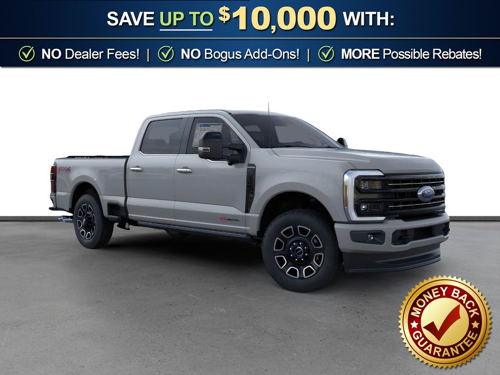Avalanche 2026 Ford F-250SD Platinum NFT 4WD 10-Speed Automatic 6.7L High Output Power Stroke V8 Diesel 4WD, 4-Wheel Disc Brakes, 410 Amp Dual Alternators, ABS brakes, Adjustable pedals, Air Conditioning, Alloy wheels, AM/FM radio: SiriusXM with 360L, Auto High-beam Headlights, Auto-dimming Rear-View mirror, Automatic temperature control, Brake assist, Compass, Delay-off headlights, Driver door bin, Driver vanity mirror, Dual front impact airbags, Dual front side impact airbags, Electronic Stability Control, Emergency communication system: SYNC 4 911 Assist, Engine Block Heater, Flow-Through Console, Ford Connectivity Package (1-Year Included), Front anti-roll bar, Front Bucket Seats, Front Center Armrest, Front dual zone A/C, Front fog lights, Front reading lights, Fully automatic headlights, FX4 Off-Road Package, Garage door transmitter, GVWR: F-250 >10K Package, Heated door mirrors, Heated front seats, Heated rear seats, Heated steering wheel, High Capacity 11.6" Axle Upgrade Package, Hill Descent Control, Illuminated entry, Internet access capable: 5G Modem - Ford Connectivity Package, Low tire pressure warning, Max Recline Seats, Memory seat, Navigation system: Connected Navigation, Off-Road Specifically Tuned Shock Absorbers, Outside temperature display, Overhead airbag, Overhead console, Panic alarm, Passenger door bin, Passenger vanity mirror, Pedal memory, Power door mirrors, Power driver seat, Power passenger seat, Power steering, Power windows, Pro Power Onboard - 2kW, Radio: B&O Unleashed Sound System by Bang & Olufsen, Rain sensing wipers, Rapid-Heat Supplemental Cab Heater, Rear reading lights, Rear seat center armrest, Rear step bumper, Rear window defroster, Remote keyless entry, Security system, SiriusXM with 360L, Speed control, Split folding rear seat, Steering wheel mounted audio controls, SYNC 4 with Enhanced Voice Recognition, Tachometer, Telescoping steering wheel, Tilt steering wheel, Traction control, Trip computer, Turn signal indicator mirrors, Twin Panel Power Moonroof, Unique FX4 Off-Road Box Decal, Upfitter Switches (6), Variably intermittent wipers, Ventilated front seats, 4WD.