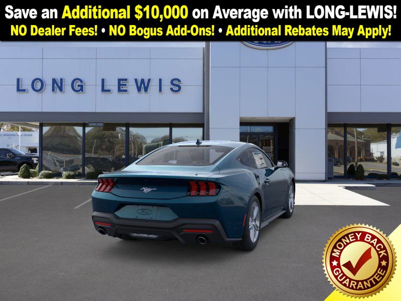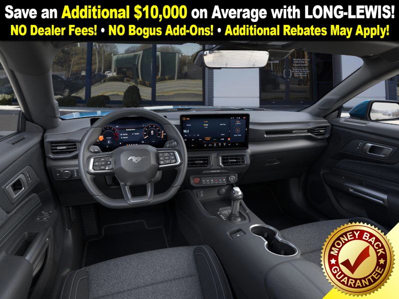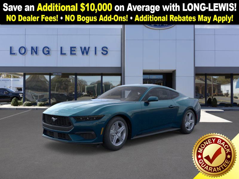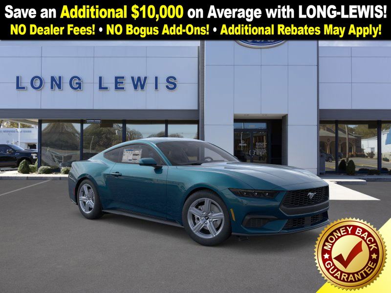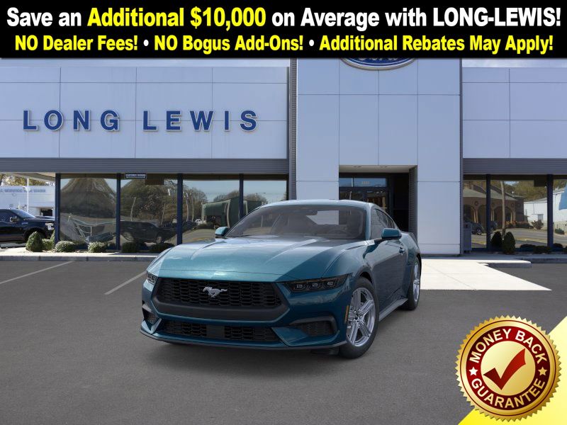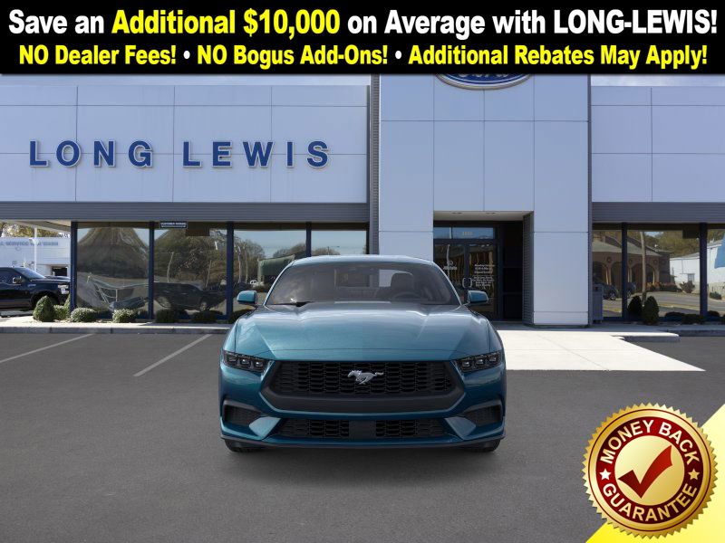Adriatic Blue Metallic 2026 Ford Mustang EcoBoost NFC RWD 10-Speed Automatic EcoBoost 2.3L I4 GTDi DOHC Turbocharged VCT ABS brakes, Alloy wheels, Compass, Electronic Stability Control, Front dual zone A/C, Illuminated entry, Low tire pressure warning, Remote keyless entry, Traction control, 4-Wheel Disc Brakes, 6 Speakers, Air Conditioning, AM/FM radio, AM/FM Stereo, Auto High-beam Headlights, Automatic temperature control, Brake assist, Bumpers: body-color, Cloth Bucket Seats, Delay-off headlights, Driver door bin, Driver vanity mirror, Dual front impact airbags, Dual front side impact airbags, Emergency communication system: 911 Assist, Exterior Parking Camera Rear, Four wheel independent suspension, Front anti-roll bar, Front Bucket Seats, Front Center Armrest, Front reading lights, Fully automatic headlights, Knee airbag, Leather Shift Knob, Occupant sensing airbag, Outside temperature display, Overhead airbag, Overhead console, Panic alarm, Passenger door bin, Passenger vanity mirror, Power door mirrors, Power steering, Power windows, Radio data system, Rain sensing wipers, Rear anti-roll bar, Rear Parking Sensors, Rear window defroster, Speed control, Speed-sensing steering, Speed-Sensitive Wipers, Split folding rear seat, Sport steering wheel, Steering wheel mounted audio controls, SYNC 4, Tachometer, Telescoping steering wheel, Tilt steering wheel, Trip computer, Variably intermittent wipers, Voltmeter, Wheels: 18" x 8" Painted Shadow Silver Cast Alum, ABS brakes, Alloy wheels, Compass, Electronic Stability Control, Front dual zone A/C, Illuminated entry, Low tire pressure warning, Remote keyless entry, Traction control.