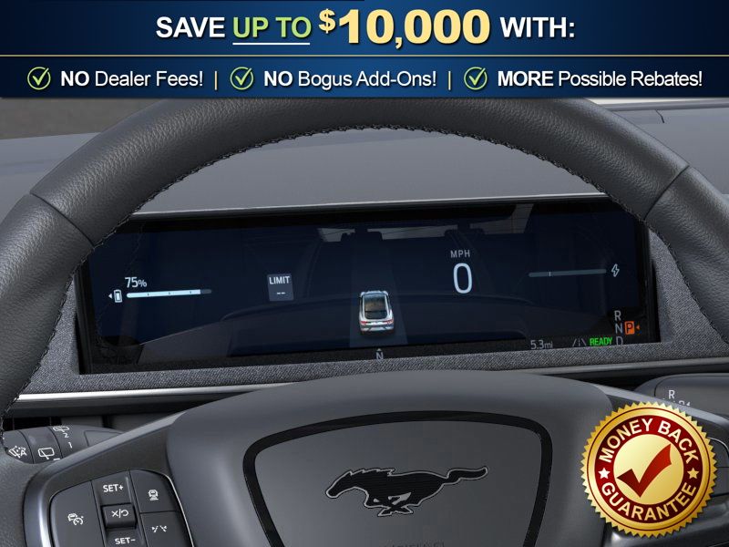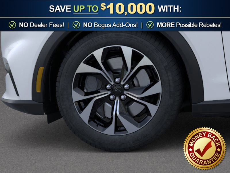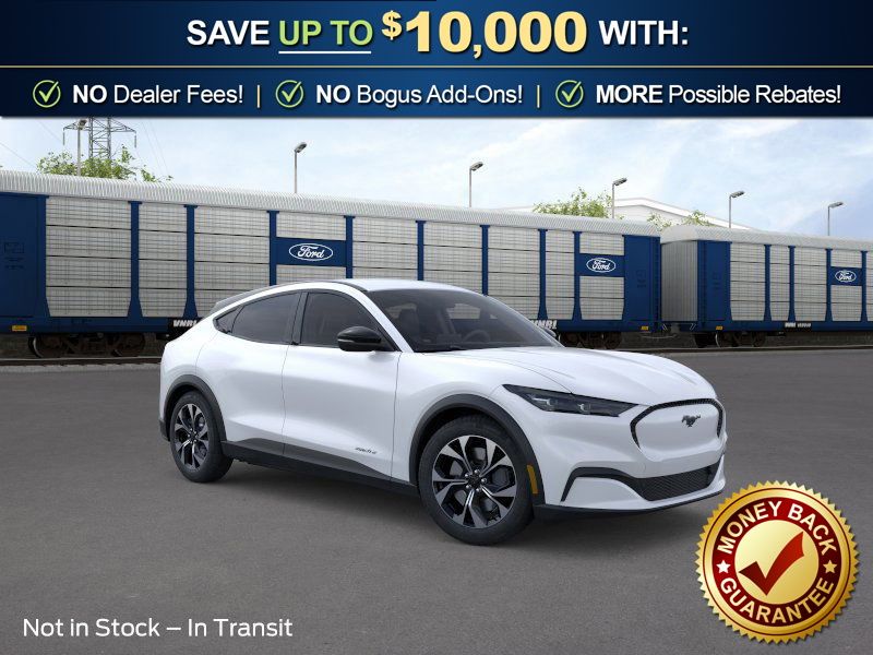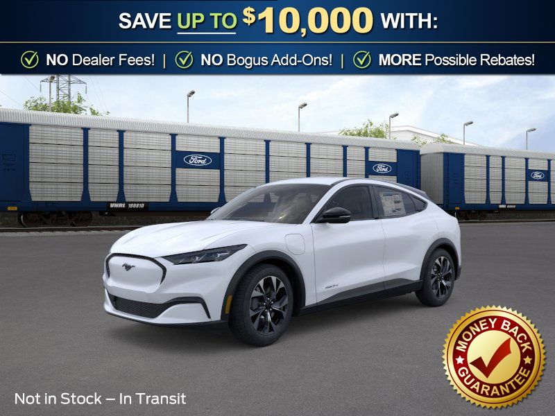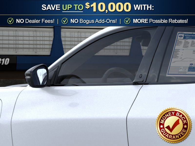 Star White Metallic Tri-Coat 2026 Ford Mustang Mach-E Select NFT RWD Single-Speed Automatic Electric Motor 4-Wheel Disc Brakes, 6 Speakers, ABS brakes, ActiveX Bucket Seats, Air Conditioning, Alloy wheels, AM/FM radio: SiriusXM with 360L, AM/FM Stereo, Apple CarPlay/Android Auto, Auto High-beam Headlights, Auto-dimming Rear-View mirror, Automatic temperature control, Brake assist, Bumpers: body-color, Comfort Package, Compass, Delay-off headlights, Driver door bin, Driver vanity mirror, Dual front impact airbags, Dual front side impact airbags, Electronic Stability Control, Emergency communication system: 911 Assist, Exterior Parking Camera Rear, Four wheel independent suspension, Front anti-roll bar, Front Bucket Seats, Front Center Armrest, Front dual zone A/C, Front License Plate Bracket, Front reading lights, Fully automatic headlights, Heated door mirrors, Heated Front Row Seats, Heated Steering Wheel, Illuminated entry, Knee airbag, Low tire pressure warning, Memory Driver's Seat and Sideview Mirrors, Mobile Power Cord (120V/240V), Navigation system: Connected Navigation, Occupant sensing airbag, Outside temperature display, Overhead airbag, Overhead console, Panic alarm, Passenger door bin, Passenger vanity mirror, Power door mirrors, Power driver seat, Power steering, Power windows, Radio data system, Rain sensing wipers, Rear anti-roll bar, Rear seat center armrest, Rear side impact airbag, Rear window defroster, Rear window wiper, Remote keyless entry, Security system, SiriusXM with 360L, Speed control, Speed-sensing steering, Speed-Sensitive Wipers, Split folding rear seat, Spoiler, Steering wheel mounted audio controls, SYNC 4A with Enhanced Voice Recognition, Telescoping steering wheel, Tilt steering wheel, Tire Inflator and Sealant Kit, Traction control, Trip computer, Turn signal indicator mirrors, Variably intermittent wipers, Wheels: 19" Machined-Face Aluminum.