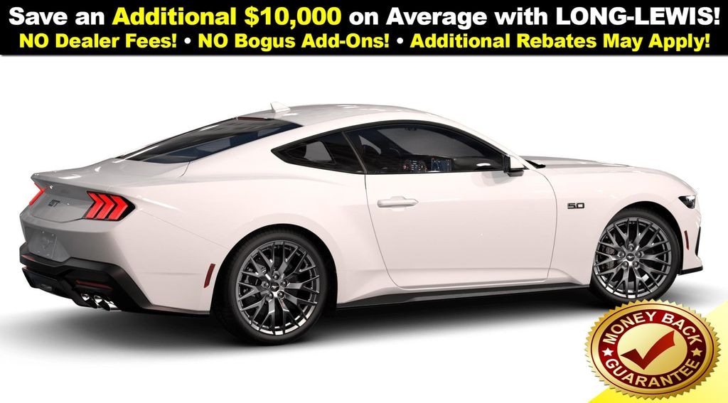Oxford White 2026 Ford Mustang GT Premium RWD 10-Speed Automatic 5.0L V8 Ti-VCT 1st Row Carpeted Black Floor Mats, 4-Wheel Disc Brakes, ABS brakes, Active Valve Performance Exhaust, Air Conditioning, Alloy wheels, AM/FM Stereo, Anti-Theft Package, Auto High-beam Headlights, Automatic temperature control, Brake assist, Bumpers: body-color, Compass, Delay-off headlights, Driver door bin, Driver vanity mirror, Dual front impact airbags, Dual front side impact airbags, Electronic Stability Control, Emergency communication system: 911 Assist, Exterior Parking Camera Rear, Four wheel independent suspension, Front anti-roll bar, Front Bucket Seats, Front Center Armrest, Front dual zone A/C, Front reading lights, Fully automatic headlights, Illuminated entry, Knee airbag, Leather Shift Knob, Leather steering wheel, Leather-Trimmed Bucket Seats w/Color Accents, Low tire pressure warning, Occupant sensing airbag, Outside temperature display, Overhead airbag, Overhead console, Panic alarm, Passenger door bin, Passenger vanity mirror, Power door mirrors, Power steering, Power windows, Radio data system, Rain sensing wipers, Rear anti-roll bar, Rear Parking Sensors, Rear window defroster, RECARO Leather-Trimmed Sport Seats, Remote keyless entry, Speed control, Speed-sensing steering, Speed-Sensitive Wipers, Split folding rear seat, Sport steering wheel, Steering wheel mounted audio controls, SYNC 4, Tachometer, Telescoping steering wheel, Tilt steering wheel, Traction control, Trip computer, Variably intermittent wipers, Voltmeter, Wheel Locking Kit, Wheels: 20" x 9" Premium-Painted Aluminum.