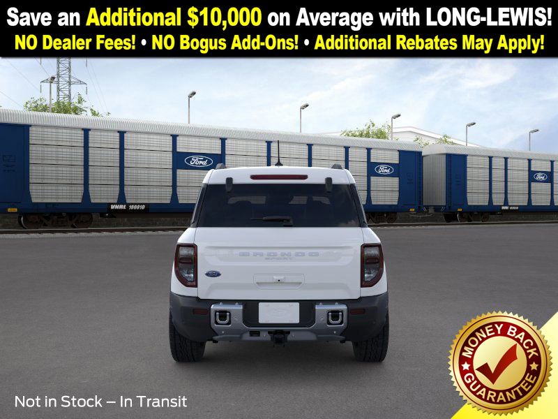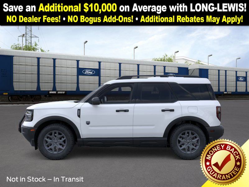 Oxford White 2025 Ford Bronco Sport Big Bend NFT 4WD 8-Speed Automatic 1.5L EcoBoost 110V/400W AC Power Outlet, 2nd Row Carpeted Seatback, 4-Wheel Disc Brakes, 6 Speakers, ABS brakes, Air Conditioning, Alloy wheels, AM/FM radio: SiriusXM, AM/FM Stereo, Auto High-beam Headlights, Automatic temperature control, Auxiliary Switches & Wiring, Black Diamond Off-Road Package, Brake assist, Brush Guard, Cargo Management System (Shelf/Divider/Table), Cargo Mat, Class II Trailer Tow Pack w/Trailer Sway Control, Cloth w/Easy-to-Clean Front Bucket Seats, Compass, Delay-off headlights, Driver door bin, Driver vanity mirror, Dual front impact airbags, Dual front side impact airbags, Electronic Stability Control, Emergency communication system: SYNC 4 911 Assist, Fender Tie Downs, Four wheel independent suspension, Front & Rear Black Bumpers, Front anti-roll bar, Front Bucket Seats, Front Center Armrest, Front License Plate Bracket, Front reading lights, Fully automatic headlights, Heated door mirrors, Illuminated entry, Interior Grab Handle, Knee airbag, Low tire pressure warning, Occupant sensing airbag, Outside temperature display, Overhead airbag, Overhead console, Panic alarm, Passenger door bin, Passenger vanity mirror, Power door mirrors, Power steering, Power windows, Radio data system, Rear anti-roll bar, Rear Parking Sensors, Rear reading lights, Rear seat center armrest, Rear window defroster, Rear window wiper, Recovery Hooks, Remote keyless entry, Security system, SiriusXM, Speed control, Speed-sensing steering, Speed-Sensitive Wipers, Split folding rear seat, Steering wheel mounted audio controls, SYNC 4 w/Enhanced Voice Recognition, Tachometer, Telescoping steering wheel, Tilt steering wheel, Traction control, Trip computer, Variably intermittent wipers, Wheels: 17" Carbonized Gray Painted Aluminum, Wheels: 17" Carbonized Gray-Painted Aluminum.