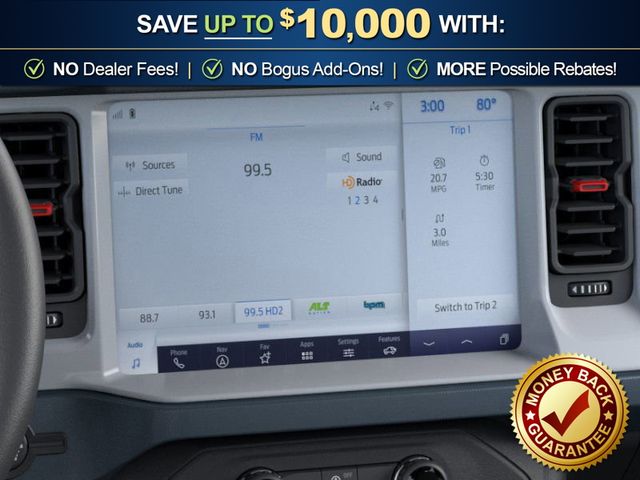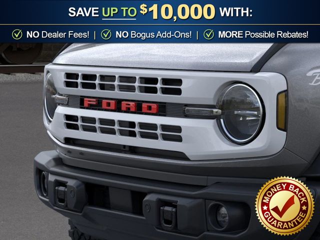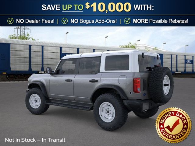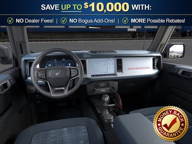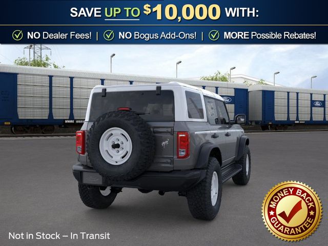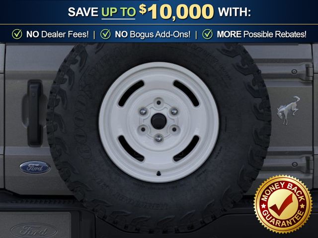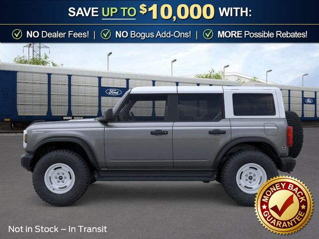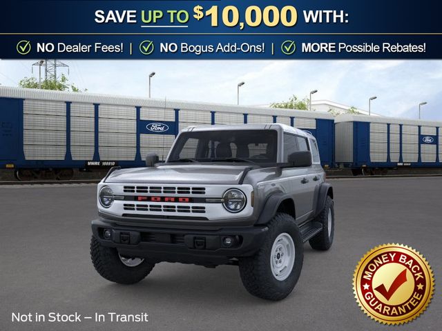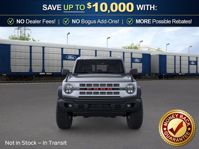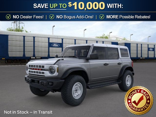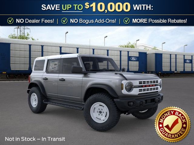 2026 Ford Bronco Heritage Edition NFT Carbonized Gray Metallic Heritage Edition NFT 4WD 10-Speed Automatic 2.7L EcoBoost V6 4-Wheel Disc Brakes, 7 Speakers, ABS brakes, Air Conditioning, Alloy wheels, AM/FM radio: SiriusXM with 360L, AM/FM Stereo, Auto High-beam Headlights, Auto-dimming Rear-View mirror, Automatic temperature control, Brake assist, Compass, Connected Navigation, Convertible HardTop, Convertible roof lining, Delay-off headlights, Driver door bin, Driver vanity mirror, Dual front impact airbags, Dual front side impact airbags, Electronic Stability Control, Emergency communication system: 911 Assist, Exterior Parking Camera Rear, Ford Connectivity Package (1-Year Included), Front anti-roll bar, Front Bucket Seats, Front Center Armrest, Front dual zone A/C, Front fog lights, Front reading lights, Front wheel independent suspension, Fully automatic headlights, Glass rear window, Heated door mirrors, Heated front seats, Heated steering wheel, Illuminated entry, Integrated roll-over protection, Low tire pressure warning, Navigation system: Connected Navigation, Occupant sensing airbag, Outside temperature display, Overhead airbag, Overhead console, Panic alarm, Passenger door bin, Passenger vanity mirror, Plaid Cloth Front Heated Bucket Seats, Power door mirrors, Power steering, Power windows, Radio data system, Rear window defroster, Rear window wiper, Remote keyless entry, Security system, SiriusXM with 360L, Speed control, Split folding rear seat, Steering wheel mounted audio controls, SYNC 4, Tachometer, Telescoping steering wheel, Tilt steering wheel, Traction control, Trip computer, Variably intermittent wipers, Wheels: 17" Unique White.