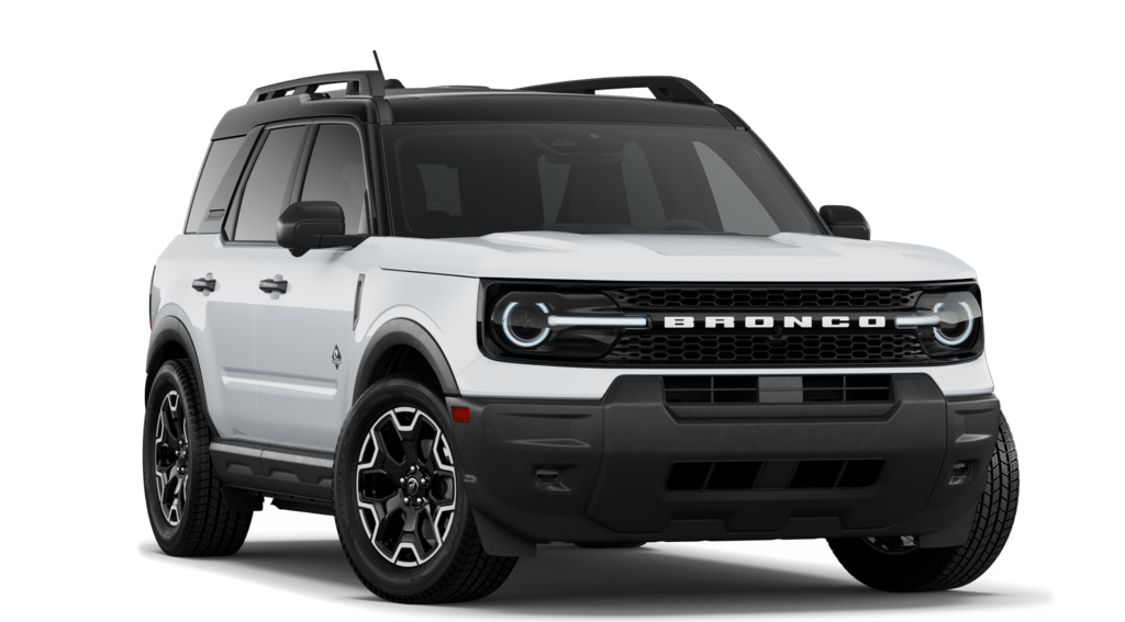 Oxford White 2026 Ford Bronco Sport Outer Banks NFT 4WD 8-Speed Automatic 1.5L EcoBoost 360-Degree Camera w/Trail View, 4-Wheel Disc Brakes, 6 Speakers, ABS brakes, Air Conditioning, Alloy wheels, AM/FM radio: SiriusXM with 360L, AM/FM Stereo, Apple CarPlay/Android Auto, Auto High-beam Headlights, Auto-dimming Rear-View mirror, Automatic temperature control, Brake assist, Compass, Connected Navigation (1-Year Included), Delay-off headlights, Driver door bin, Driver vanity mirror, Dual front impact airbags, Dual front side impact airbags, Electronic Stability Control, Emergency communication system: SYNC 4 911 Assist, Exterior Parking Camera Rear, Ford Connectivity Package (1-Year Included), Four wheel independent suspension, Front anti-roll bar, Front Bucket Seats, Front Center Armrest, Front Driver/Passenger Seat Back Map Pockets, Front dual zone A/C, Front fog lights, Front License Plate Bracket, Front Parking Sensors, Front reading lights, Fully automatic headlights, Heated door mirrors, Heated front seats, Heated steering wheel, Illuminated entry, Internet access capable: 5G Modem - Ford Connectivity Package, Knee airbag, Low tire pressure warning, Memory seat, Occupant sensing airbag, Outer Banks Tech Package+, Outside temperature display, Overhead airbag, Overhead console, Panic alarm, Passenger door bin, Passenger vanity mirror, Power door mirrors, Power driver seat, Power Moonroof, Power passenger seat, Power steering, Power windows, Premium Trimmed Htd Fr Sport Contour Bucket Seats, Premium Trimmed Htd Frt Sport Contour Bucket Seats, Radio data system, Radio: HD w/B&O Sound System by Bang & Olufsen, Rear anti-roll bar, Rear Parking Sensors, Rear reading lights, Rear seat center armrest, Rear window defroster, Rear window wiper, Remote keyless entry, Reverse Brake Assist, Security system, SiriusXM w/360L, Speed control, Speed-sensing steering, Speed-Sensitive Wipers, Split folding rear seat, Steering wheel mounted audio controls, SYNC 4 w/Enhanced Voice Recognition, Tachometer, Telescoping steering wheel, Tilt steering wheel, Traction control, Trip computer, Variably intermittent wipers, Wheels: 18" Ebony Black-Painted Aluminum.