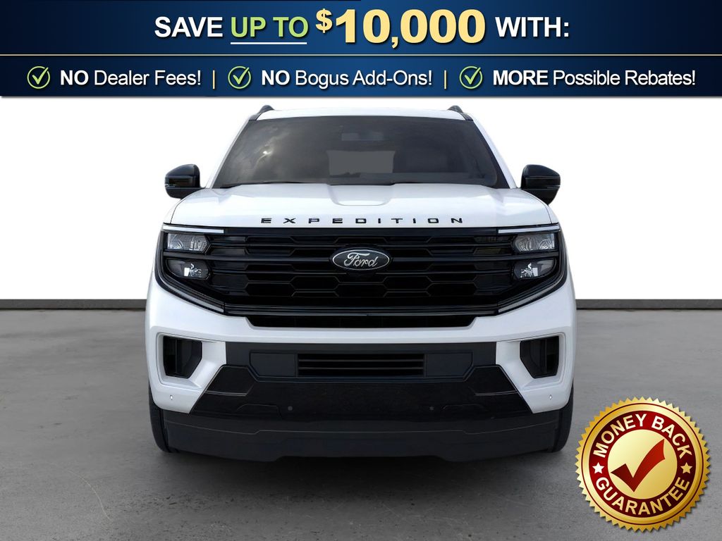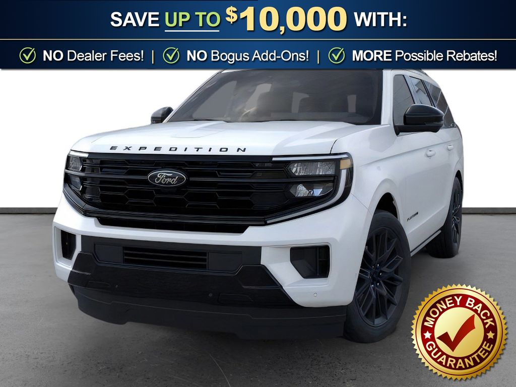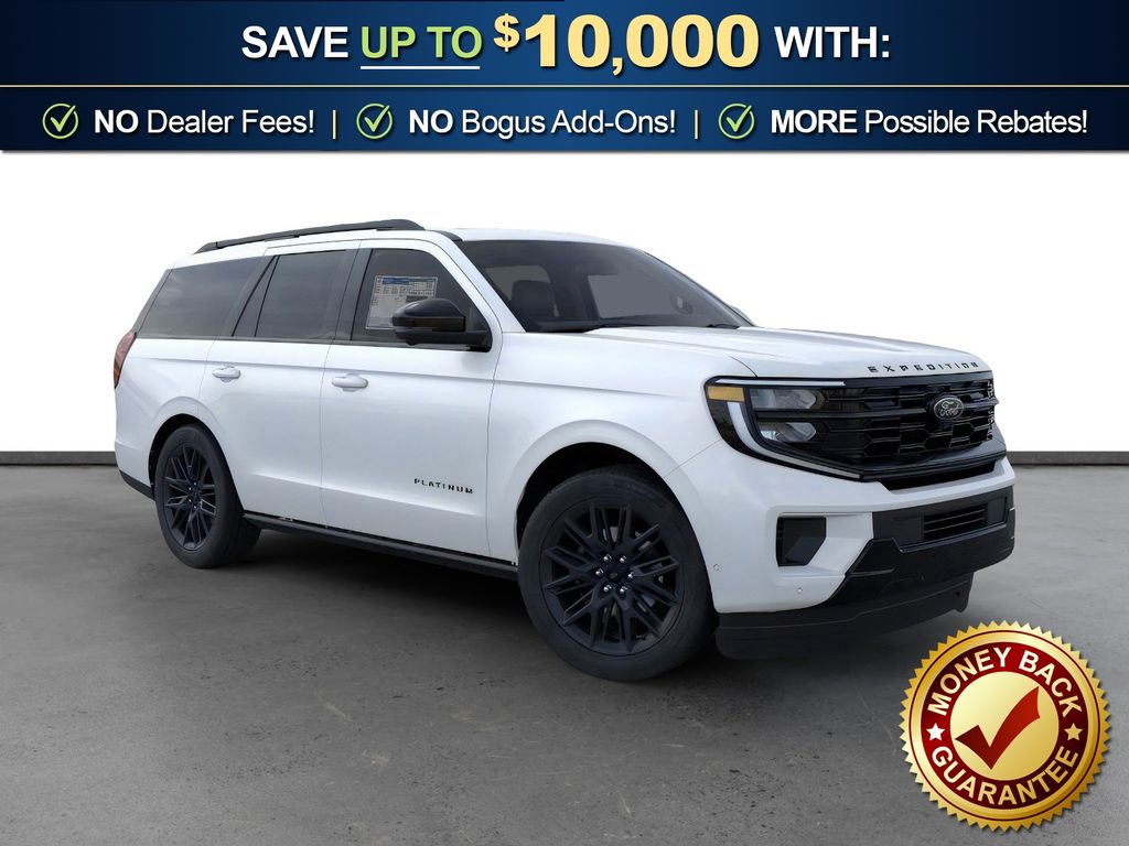 Star White Metallic Tri-Coat 2026 Ford Expedition Platinum NFT 4WD 10-Speed Automatic EcoBoost 3.5L V6 GTDi DOHC 24V Twin Turbocharged 4WD, 10 Speakers, 2nd Row Power-Folding Captain's Chairs, 3.73 Axle Ratio, 3rd row seats: split-bench, 4-Wheel Disc Brakes, ABS brakes, Air Conditioning, Alloy wheels, AM/FM radio: SiriusXM with 360L, Apple CarPlay/Android Auto, Auto High-beam Headlights, Auto-dimming door mirrors, Auto-dimming Rear-View mirror, Automatic temperature control, Black Belt Molding, Black Expedition Lettering on Hood, Black Headlamp Bezel with Ebony Trim Applique, Black Platinum Badge on Tailgate, Black Roof Rails, BlueCruise (equipment + 1-Year + 90-Day Plan), Brake assist, Bumpers: body-color, Carbon Black Front Bumper/Fascia, Compass, Delay-off headlights, Driver door bin, Driver vanity mirror, Dual front impact airbags, Dual front side impact airbags, Electronic Stability Control, Emergency communication system: 911 Assist, Exterior Parking Camera Rear, Ford Connectivity Package (1-Year Included), Ford Digital Experience, Four wheel independent suspension, Front anti-roll bar, Front Bucket Seats, Front Center Armrest, Front dual zone A/C, Front License Plate Bracket, Front reading lights, Fully automatic headlights, Garage door transmitter, Genuine wood dashboard insert, Genuine wood door panel insert, Heated and Ventilated Leather Front Captain's Chairs, Heated door mirrors, Heated front seats, Heated rear seats, Heated steering wheel, Illuminated entry, Intersection Assist, Leather steering wheel, Low tire pressure warning, Memory seat, Multicontour Active Motion Lthr Frnt Captains Chairs, Navigation System, Occupant sensing airbag, Outside temperature display, Overhead airbag, Overhead console, Panic alarm, Passenger door bin, Passenger vanity mirror, Power door mirrors, Power driver seat, Power moonroof: Vista Roof, Power passenger seat, Power steering, Power windows, Radio data system, Radio: B&O Sound System by Bang and Olufsen, Rain sensing wipers, Rear air conditioning, Rear anti-roll bar, Rear reading lights, Rear Side Windows Laminated Glass, Rear window defroster, Rear window wiper, Reclining 3rd row seat, Remote keyless entry, Security system, Signature Grille Lighting, SiriusXM with 360L, Speed control, Speed-sensing steering, Speed-Sensitive Wipers, Split folding rear seat, Spoiler, Stealth Appearance Package, Steering wheel memory, Steering wheel mounted audio controls, Tachometer, Telescoping steering wheel, Tilt steering wheel, Traction control, Trip computer, Turn signal indicator mirrors, Variably intermittent wipers, Ventilated front seats, Voltmeter, Wheels: 20" x 8.5" Ebony Bright Machined Aluminum, 4WD.