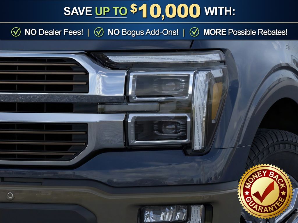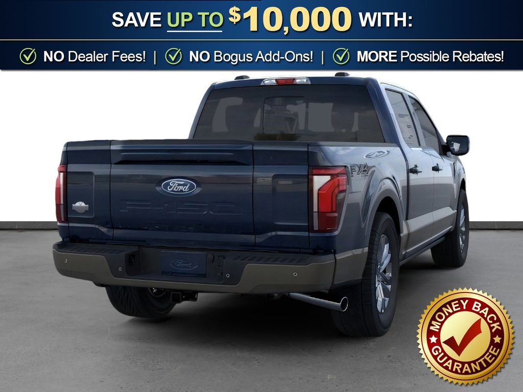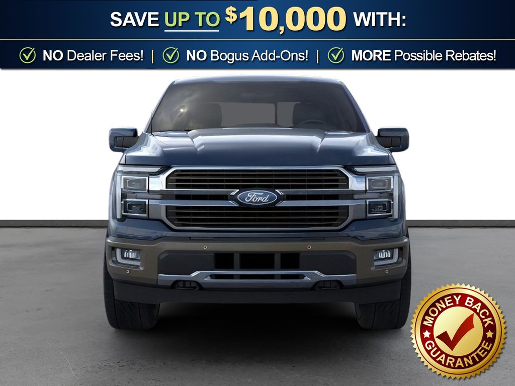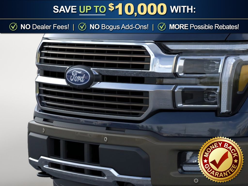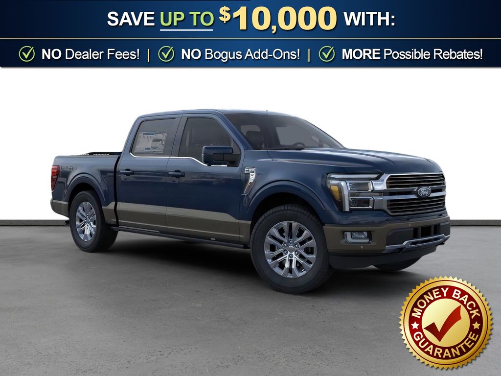 Antimatter Blue Metallic 2026 Ford F-150 King Ranch NFT 4WD 10-Speed Automatic 3.5L V6 EcoBoost 4WD, 4-Wheel Disc Brakes, 4x4 FX4 Off-Road Bodyside Decal, 8 Speakers, ABS brakes, Adjustable pedals, Air Conditioning, Alloy wheels, AM/FM radio: SiriusXM with 360L, Auto High-beam Headlights, Auto tilt-away steering wheel, Auto-dimming door mirrors, Auto-dimming Rear-View mirror, Automatic temperature control, Brake assist, Chrome wheels, Compass, Delay-off headlights, Driver door bin, Driver vanity mirror, Driver's Side SecuriCode Keyless-Entry Keypad, Dual front impact airbags, Dual front side impact airbags, Electronic Locking with 3.55 Axle Ratio, Electronic Stability Control, Emergency communication system: SYNC 4 911 Assist, Ford Connectivity Package (1-Year Included), Front anti-roll bar, Front Bucket Seats, Front Center Armrest, Front dual zone A/C, Front fog lights, Front License Plate Bracket, Front reading lights, Front wheel independent suspension, Fully automatic headlights, FX4 Off-Road Package, Garage door transmitter, Genuine wood dashboard insert, GVWR: 7,400 lbs Payload Package, Head-Up Display, Heated door mirrors, Heated front seats, Heated rear seats, Heated steering wheel, Hill Descent Control, Illuminated entry, Internet access capable: 5G Modem - Ford Connectivity Package, King Ranch Multicontour Leather Bucket Seats, Leather steering wheel, Low tire pressure warning, Memory seat, Navigation system: Connected Navigation, Occupant sensing airbag, Off-Road Tuned Front Shock Absorbers, Outside temperature display, Overhead airbag, Overhead console, Panic alarm, Passenger door bin, Passenger vanity mirror, Pedal memory, Power door mirrors, Power driver seat, Power passenger seat, Power steering, Power windows, Pro Access Tailgate, Radio data system, Radio: B&O Sound System by Bang and Olufsen, Rain sensing wipers, Rear reading lights, Rear seat center armrest, Rear step bumper, Rear window defroster, Remote keyless entry, Security system, Speed control, Split folding rear seat, Steering wheel memory, Steering wheel mounted audio controls, SYNC 4 with Enhanced Voice Recognition, Tachometer, Telescoping steering wheel, Tilt steering wheel, Traction control, Trip computer, Turn signal indicator mirrors, Twin Panel Moonroof, Variably intermittent wipers, Ventilated front seats, Wheels: 20" Chrome-Like PVD, 4WD.