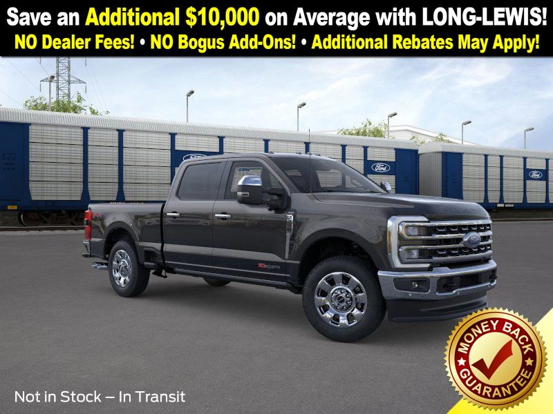 Agate Black Metallic 2026 Ford F-250SD Lariat NFT 4WD 10-Speed Automatic 6.7L High Output Power Stroke V8 Diesel 4WD, 4-Way Adjustable Headrests, 4-Wheel Disc Brakes, 410 Amp Dual Alternators, 6" Angular Bright Anodized Step Bars, 8 Speakers, ABS brakes, Adaptive Cruise Control w/Stop-and-Go, Adjustable pedals, Air Conditioning, Alloy wheels, AM/FM radio: SiriusXM with 360L, Auto High-beam Headlights, Auto-dimming Rear-View mirror, Automatic High Beam, Automatic temperature control, BLIS w/Cross-Traffic Alert, Brake assist, Bumpers: chrome, Chrome Door Handles, Chrome Exhaust Tip, Chrome Package, Compass, Delay-off headlights, Driver door bin, Driver vanity mirror, Dual AGM 68 AH Battery, Dual front impact airbags, Dual front side impact airbags, Electronic Stability Control, Emergency communication system: SYNC 4 911 Assist, Engine Block Heater, F-250 >10K GVWR Package, Flow-Through Console, Ford Connectivity Package (1-Year Included), Front & Rear Parking Sensors, Front ActiveX Trimmed 40/Console/40 Seats, Front anti-roll bar, Front Bucket Seats, Front Center Armrest, Front dual zone A/C, Front fog lights, Front reading lights, Fully automatic headlights, FX4 Off-Road Package, Garage door transmitter, Head-Up Display, Heated door mirrors, Heated front seats, Heated rear seats, Heated steering wheel, High Capacity 11.6" Axle Upgrade Package, Hill Descent Control, Illuminated entry, Internet access capable: 5G Modem - Ford Connectivity Package, Lane Departure Warning System, Lane-Keeping System, Lariat Premium Package, Lariat Ultimate Package, LED Roof Clearance Lights, Low tire pressure warning, Memory seat, Navigation system: Connected Navigation, Off-Road Specifically Tuned Shock Absorbers, Outside temperature display, Overhead airbag, Overhead console, Panic alarm, Passenger door bin, Passenger vanity mirror, Pedal memory, Post-Collision Braking, Power door mirrors, Power driver seat, Power passenger seat, Power steering, Power windows, Power-Deployable Running Boards, Power-Sliding Rear-Window w/Defrost, Pre-Collision Assist, Privacy Glass, Pro Trailer Backup Assist, Pro Trailer Hitch Assist, Radio: B&O Sound System by Bang & Olufsen, Radio: B&O Unleashed Sound System by Bang & Olufsen, Rain sensing wipers, Rapid-Heat Supplemental Cab Heater, Rear Parking Sensors, Rear reading lights, Rear seat center armrest, Rear step bumper, Rear window defroster, Remote keyless entry, Security system, SiriusXM w/360L, Speed control, Split folding rear seat, Steering wheel mounted audio controls, SYNC 4 w/Enhanced Voice Recognition, Tachometer, Tailgate Step & Handle, Telescoping steering wheel, Tilt steering wheel, Traction control, Trip computer, Turn signal indicator mirrors, Twin Panel Power Moonroof, Unique Chrome Mirror Caps, Unique FX4 Off-Road Box Decal, Upfitter Switches (6), Variably intermittent wipers, Ventilated front seats, Wheels: 18" Bright Machined & Carbonized Gray Alum, Wheels: 20" Chrome PVD Aluminum, 4WD.