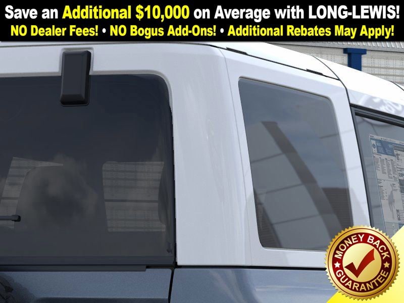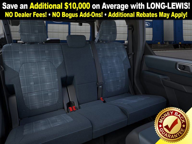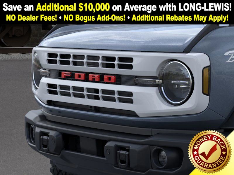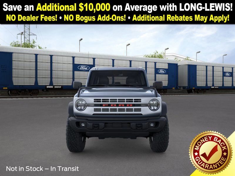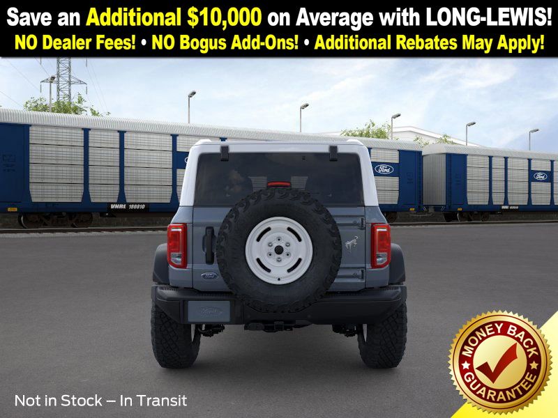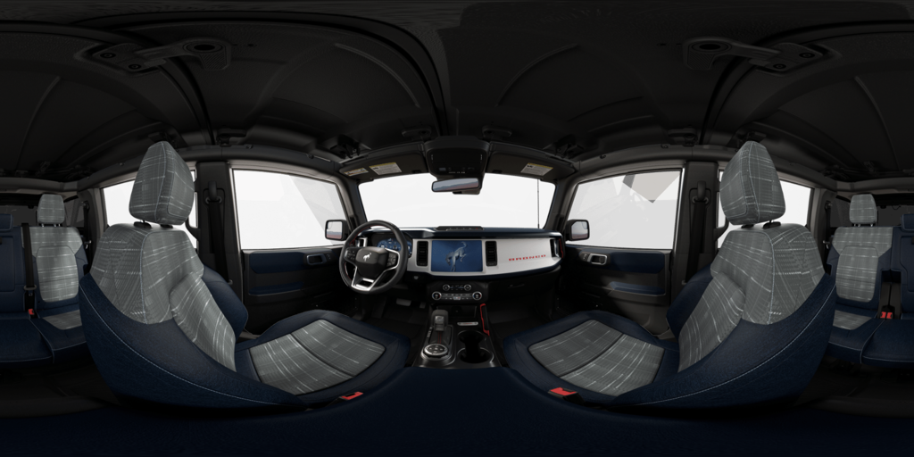 Azure Gray Metallic Tri-Coat 2025 Ford Bronco Heritage Edition NFT 4WD 10-Speed Automatic 2.7L EcoBoost V6 4-Wheel Disc Brakes, 7 Speakers, ABS brakes, Air Conditioning, Alloy wheels, AM/FM radio: SiriusXM with 360L, AM/FM Stereo, Auto High-beam Headlights, Auto-dimming Rear-View mirror, Automatic temperature control, Brake assist, Compass, Connected Navigation, Convertible HardTop, Convertible roof lining, Delay-off headlights, Driver door bin, Driver vanity mirror, Dual front impact airbags, Dual front side impact airbags, Electronic Stability Control, Emergency communication system: 911 Assist, Exterior Parking Camera Rear, Front anti-roll bar, Front Bucket Seats, Front Center Armrest, Front dual zone A/C, Front fog lights, Front License Plate Bracket, Front reading lights, Front wheel independent suspension, Fully automatic headlights, Glass rear window, Heated door mirrors, Heated front seats, Heated steering wheel, Illuminated entry, Integrated roll-over protection, Internet access capable: FordPass Connect, Leather Shift Knob, Low tire pressure warning, Navigation system: Connected Navigation, Occupant sensing airbag, Outside temperature display, Overhead airbag, Overhead console, Panic alarm, Passenger door bin, Passenger vanity mirror, Plaid Cloth Front Heated Bucket Seats, Power door mirrors, Power steering, Power windows, Radio data system, Rear window defroster, Rear window wiper, Remote keyless entry, Security system, SiriusXM w/360L, Speed control, Split folding rear seat, Steering wheel mounted audio controls, SYNC 4, Tachometer, Telescoping steering wheel, Tilt steering wheel, Traction control, Trip computer, Variably intermittent wipers, Wheels: 17" Unique White.