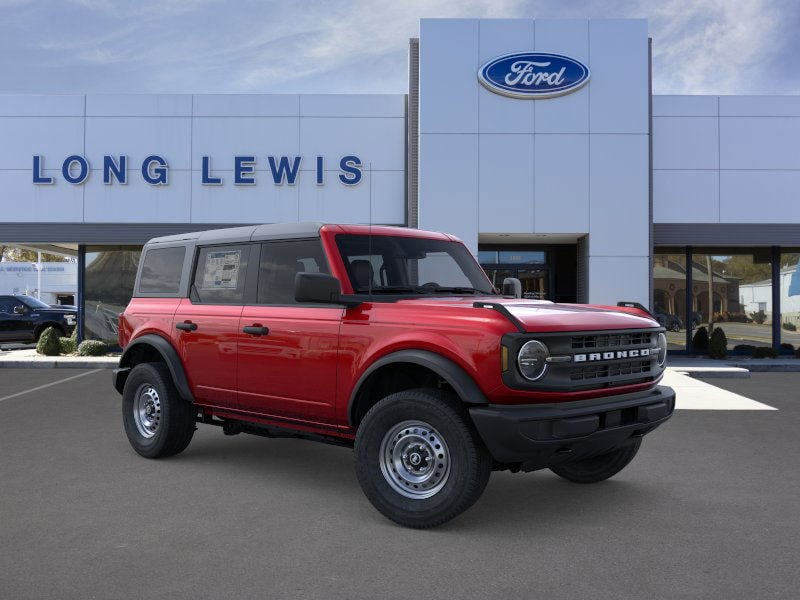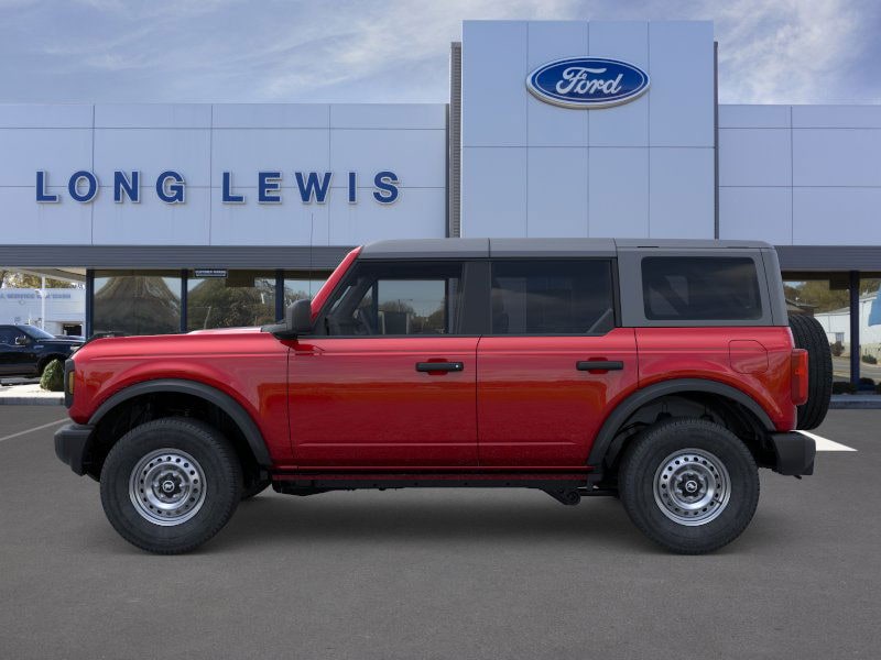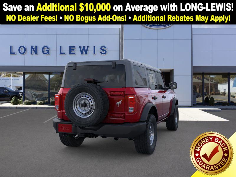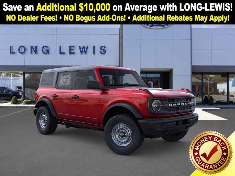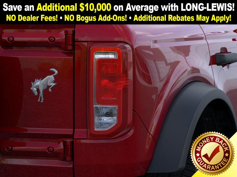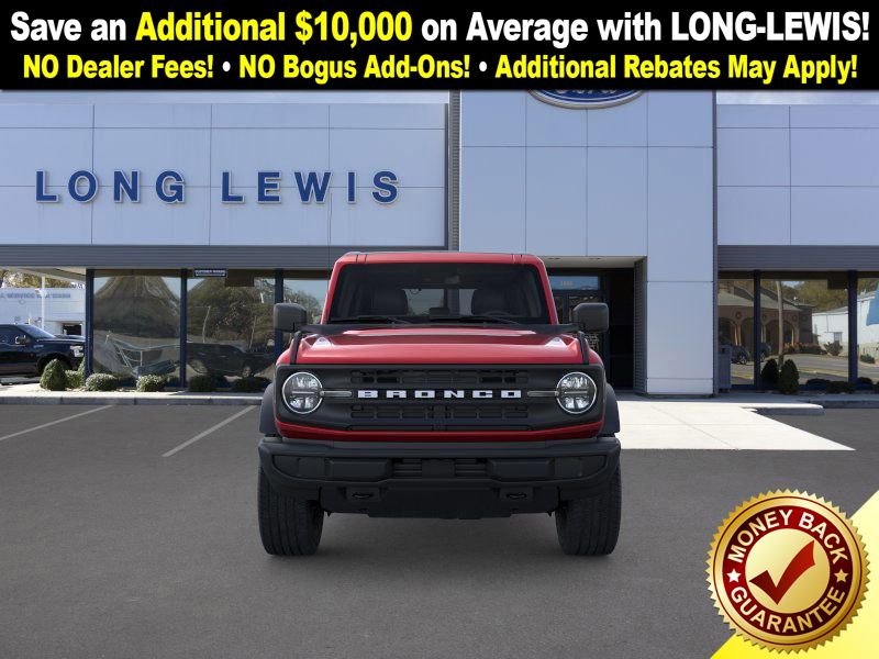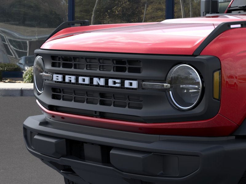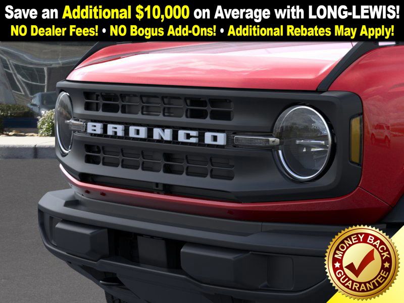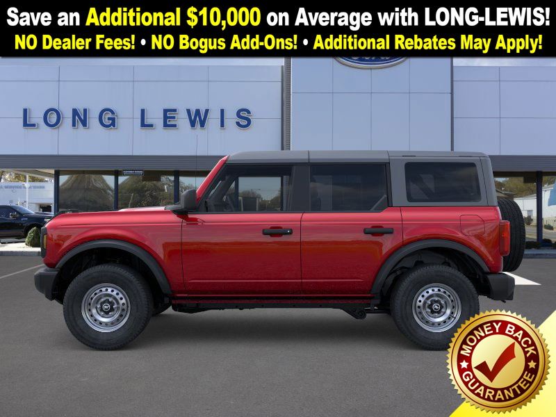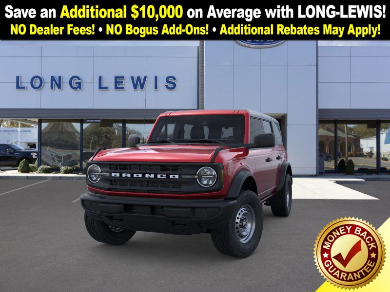 Ruby Red Metallic Tinted Clearcoat 2025 Ford Bronco fctp 4WD 10-Speed Automatic 2.3L EcoBoost I-4 4-Wheel Disc Brakes, 4.46 Axle Ratio, 7 Speakers, ABS brakes, Air Conditioning, AM/FM radio: SiriusXM with 360L, AM/FM Stereo, Auto High-beam Headlights, Brake assist, Carbonized Gray Molded-In-Color Hard Top, Cloth Bucket Seats, Compass, Delay-off headlights, Driver door bin, Driver vanity mirror, Dual front impact airbags, Dual front side impact airbags, Electronic Stability Control, Emergency communication system: 911 Assist, Exterior Parking Camera Rear, Front anti-roll bar, Front Bucket Seats, Front Center Armrest, Front License Plate Bracket, Front reading lights, Front wheel independent suspension, Fully automatic headlights, Hard Top Sound Deadening Headliner, Heated door mirrors, Illuminated entry, Integrated roll-over protection, Low tire pressure warning, Occupant sensing airbag, Outside temperature display, Overhead airbag, Overhead console, Panic alarm, Passenger door bin, Passenger vanity mirror, Power door mirrors, Power steering, Power windows, Radio data system, Rear-Window Defroster & Washer, Remote keyless entry, Security system, SiriusXM w/360L, Speed control, Split folding rear seat, Steering wheel mounted audio controls, SYNC 4, Tachometer, Telescoping steering wheel, Tilt steering wheel, Traction control, Trip computer, Variably intermittent wipers, Wheels: 16" Bright Polished Silver-Painted Steel.