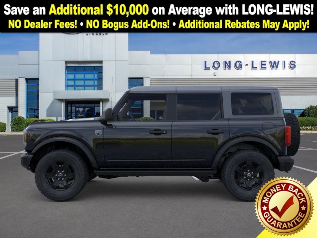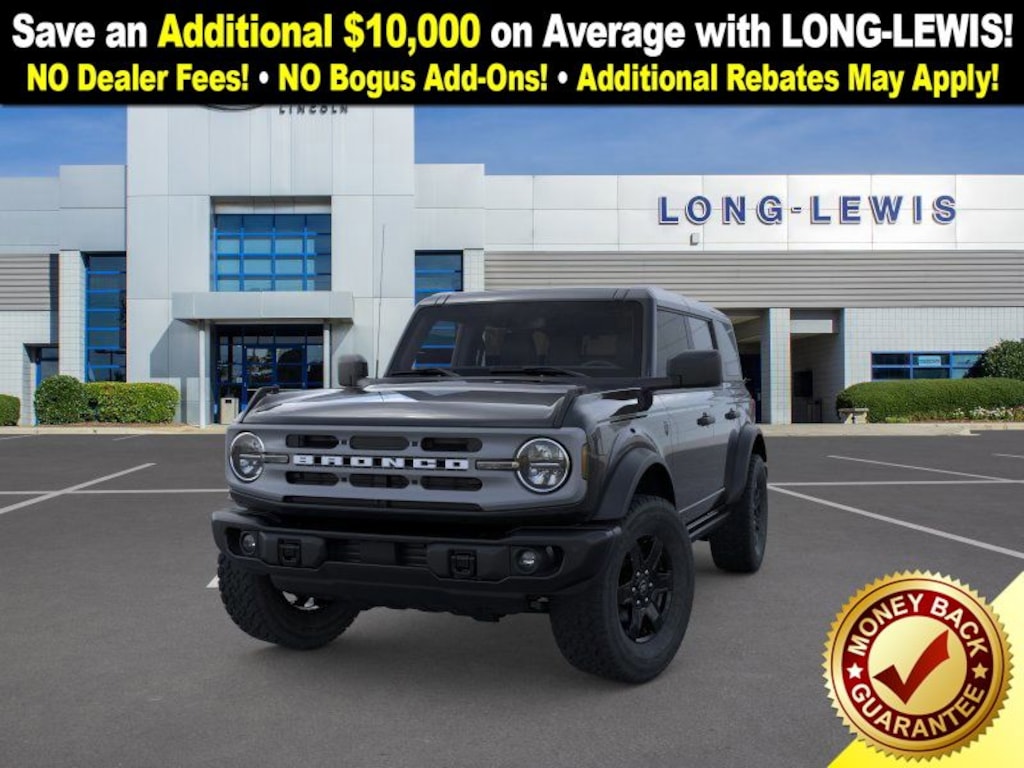 Dealer Discount of $2,617 off MSRP Shadow Black 2025 Ford Bronco Big Bend fctp 4WD 10-Speed Automatic 2.3L EcoBoost I-4 4-Wheel Disc Brakes, 7 Speakers, ABS brakes, Air Conditioning, Alloy wheels, AM/FM radio: SiriusXM with 360L, AM/FM Stereo, Auto High-beam Headlights, Auxiliary Switches, Black Diamond Package, Brake assist, Carbonized Gray Molded-In-Color Hard Top, Cloth Bucket Seats, Compass, Delay-off headlights, Driver door bin, Driver vanity mirror, Dual front impact airbags, Dual front side impact airbags, Electronic Stability Control, Emergency communication system: 911 Assist, Exterior Parking Camera Rear, Front anti-roll bar, Front Bucket Seats, Front Center Armrest, Front License Plate Bracket, Front reading lights, Front wheel independent suspension, Fully automatic headlights, Hard Top Sound Deadening Headliner, Heated door mirrors, Illuminated entry, Integrated roll-over protection, Leather Shift Knob, LED Fog Lamps, Low tire pressure warning, Occupant sensing airbag, Outside temperature display, Overhead airbag, Overhead console, Panic alarm, Passenger door bin, Passenger vanity mirror, Powder Coated Steel Front & Rear Bumpers, Power door mirrors, Power steering, Power windows, Radio data system, Rear-Window Defroster & Washer, Remote keyless entry, Rock Rails, Security system, SiriusXM w/360L, Speed control, Split folding rear seat, Steering wheel mounted audio controls, SYNC 4, Tachometer, Telescoping steering wheel, Tilt steering wheel, Traction control, Trip computer, Variably intermittent wipers, Washout Capable Rubberized Flooring, Wheels: 17" Black High Gloss Painted Aluminum, Wheels: 17" Carbonized Gray-Painted Aluminum. Price includes: $2000 - Retail Bonus Cash. Exp. 01/05/2026