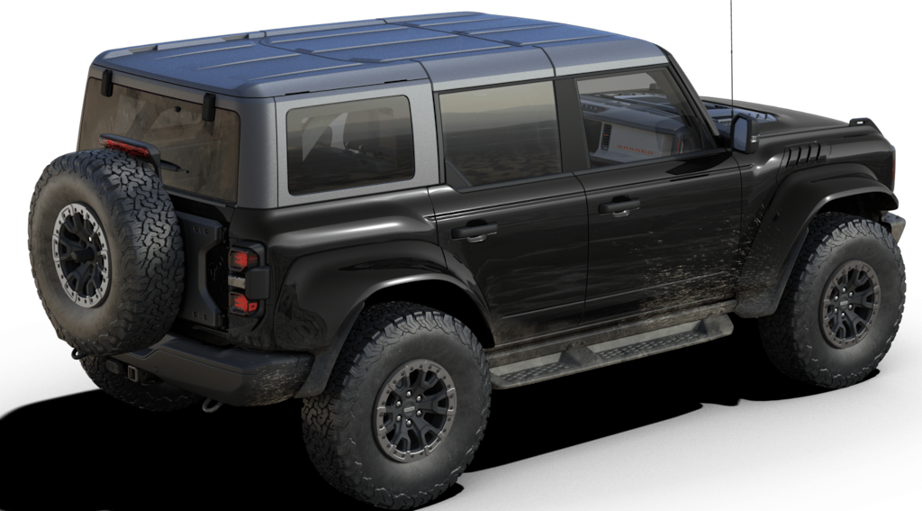 Shadow Black 2025 Ford Bronco Raptor 4WD 10-Speed Automatic 3.0L EcoBoost V6 12 Speakers, 4-Wheel Disc Brakes, ABS brakes, Air Conditioning, Alloy wheels, AM/FM radio: SiriusXM with 360L, Auto High-beam Headlights, Auto-dimming Rear-View mirror, Automatic temperature control, Brake assist, Compass, Connected Navigation, Convertible HardTop, Convertible roof lining, Delay-off headlights, Driver door bin, Driver vanity mirror, Dual front impact airbags, Dual front side impact airbags, Electronic Stability Control, Emergency communication system: 911 Assist, Exterior Parking Camera Rear, Front anti-roll bar, Front Bucket Seats, Front Center Armrest, Front dual zone A/C, Front fog lights, Front License Plate Bracket, Front reading lights, Front wheel independent suspension, Fully automatic headlights, Garage door transmitter, Glass rear window, Gloss Black Sideview Mirror Skull Caps, Hard Top Sound Deadening Headliner, Heated door mirrors, Heated front seats, Heated steering wheel, Illuminated entry, Integrated roll-over protection, Interior Carbon Fiber Pack, Leather Shift Knob, Leather-Trimmed/Vinyl Bucket Seats, Low tire pressure warning, Marine Grade Vinyl Bucket Seats, Navigation system: Connected Navigation, Occupant sensing airbag, Outside temperature display, Overhead airbag, Overhead console, Panic alarm, Passenger door bin, Passenger vanity mirror, Power door mirrors, Power steering, Power windows, Radio data system, Radio: B&O Sound System by Bang & Olufsen, Raptor Shadow Black Appearance Package, Rear anti-roll bar, Rear seat center armrest, Rear window defroster, Rear window wiper, Rear-Window Defroster & Washer, Remote keyless entry, Security system, Shadow Black Painted Hard Top, SiriusXM w/360L, Speed control, Split folding rear seat, Steering wheel mounted audio controls, SYNC 4, Tachometer, Telescoping steering wheel, Tilt steering wheel, Traction control, Trip computer, Turn signal indicator mirrors, Variably intermittent wipers, Voltmeter, Wheels: 17" Black High Gloss-Painted Aluminum, Wheels: 17" Dark Carbonized Gray Alloy Painted.
