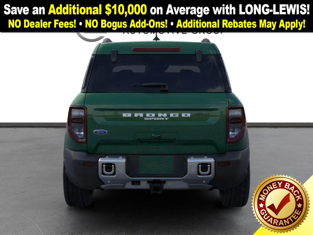 Eruption Green Metallic 2025 Ford Bronco Sport Big Bend NFT 4WD 8-Speed Automatic 1.5L EcoBoost 110V/400W AC Power Outlet, 2nd Row Carpeted Seatback, 4-Wheel Disc Brakes, 6 Speakers, ABS brakes, Air Conditioning, Alloy wheels, AM/FM radio: SiriusXM, AM/FM Stereo, Auto High-beam Headlights, Automatic temperature control, Auxiliary Switches & Wiring, Black Diamond Off-Road Package, Brake assist, Brush Guard, Cargo Management System (Shelf/Divider/Table), Cargo Mat, Class II Trailer Tow Pack w/Trailer Sway Control, Cloth w/Easy-to-Clean Front Bucket Seats, Compass, Delay-off headlights, Driver door bin, Driver vanity mirror, Dual front impact airbags, Dual front side impact airbags, Electronic Stability Control, Emergency communication system: SYNC 4 911 Assist, Fender Tie Downs, Four wheel independent suspension, Front & Rear Black Bumpers, Front anti-roll bar, Front Bucket Seats, Front Center Armrest, Front License Plate Bracket, Front reading lights, Fully automatic headlights, Heated door mirrors, Illuminated entry, Interior Grab Handle, Knee airbag, Low tire pressure warning, Occupant sensing airbag, Outside temperature display, Overhead airbag, Overhead console, Panic alarm, Passenger door bin, Passenger vanity mirror, Power door mirrors, Power steering, Power windows, Radio data system, Rear anti-roll bar, Rear Parking Sensors, Rear reading lights, Rear seat center armrest, Rear window defroster, Rear window wiper, Recovery Hooks, Remote keyless entry, Security system, SiriusXM, Speed control, Speed-sensing steering, Speed-Sensitive Wipers, Split folding rear seat, Steering wheel mounted audio controls, SYNC 4 w/Enhanced Voice Recognition, Tachometer, Telescoping steering wheel, Tilt steering wheel, Traction control, Trip computer, Variably intermittent wipers, Wheels: 17" Carbonized Gray Painted Aluminum, Wheels: 17" Carbonized Gray-Painted Aluminum.