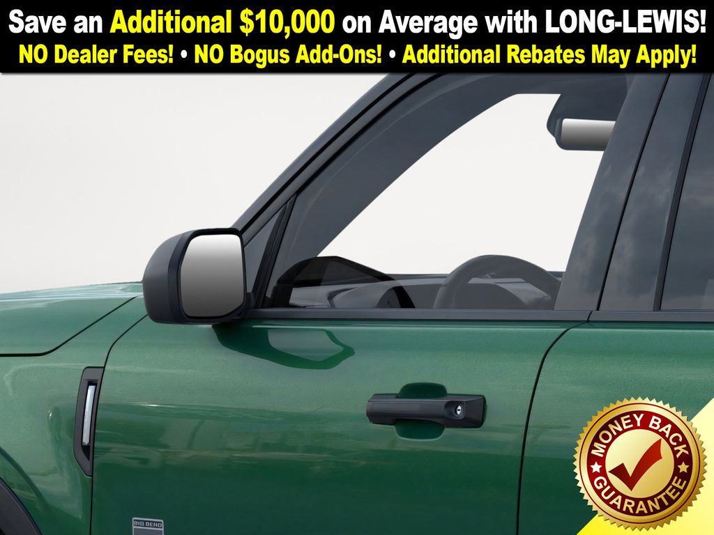 Eruption Green Metallic 2025 Ford Bronco Sport Big Bend NFT 4WD 8-Speed Automatic 1.5L EcoBoost 110V/400W AC Power Outlet, 2nd Row Carpeted Seatback, 4-Wheel Disc Brakes, 6 Speakers, ABS brakes, Air Conditioning, Alloy wheels, AM/FM radio: SiriusXM, AM/FM Stereo, Auto High-beam Headlights, Automatic temperature control, Auxiliary Switches & Wiring, Black Diamond Off-Road Package, Brake assist, Brush Guard, Cargo Management System (Shelf/Divider/Table), Cargo Mat, Class II Trailer Tow Pack w/Trailer Sway Control, Cloth w/Easy-to-Clean Front Bucket Seats, Compass, Delay-off headlights, Driver door bin, Driver vanity mirror, Dual front impact airbags, Dual front side impact airbags, Electronic Stability Control, Emergency communication system: SYNC 4 911 Assist, Fender Tie Downs, Four wheel independent suspension, Front & Rear Black Bumpers, Front anti-roll bar, Front Bucket Seats, Front Center Armrest, Front License Plate Bracket, Front reading lights, Fully automatic headlights, Heated door mirrors, Illuminated entry, Interior Grab Handle, Knee airbag, Low tire pressure warning, Occupant sensing airbag, Outside temperature display, Overhead airbag, Overhead console, Panic alarm, Passenger door bin, Passenger vanity mirror, Power door mirrors, Power steering, Power windows, Radio data system, Rear anti-roll bar, Rear Parking Sensors, Rear reading lights, Rear seat center armrest, Rear window defroster, Rear window wiper, Recovery Hooks, Remote keyless entry, Security system, SiriusXM, Speed control, Speed-sensing steering, Speed-Sensitive Wipers, Split folding rear seat, Steering wheel mounted audio controls, SYNC 4 w/Enhanced Voice Recognition, Tachometer, Telescoping steering wheel, Tilt steering wheel, Traction control, Trip computer, Variably intermittent wipers, Wheels: 17" Carbonized Gray Painted Aluminum, Wheels: 17" Carbonized Gray-Painted Aluminum.